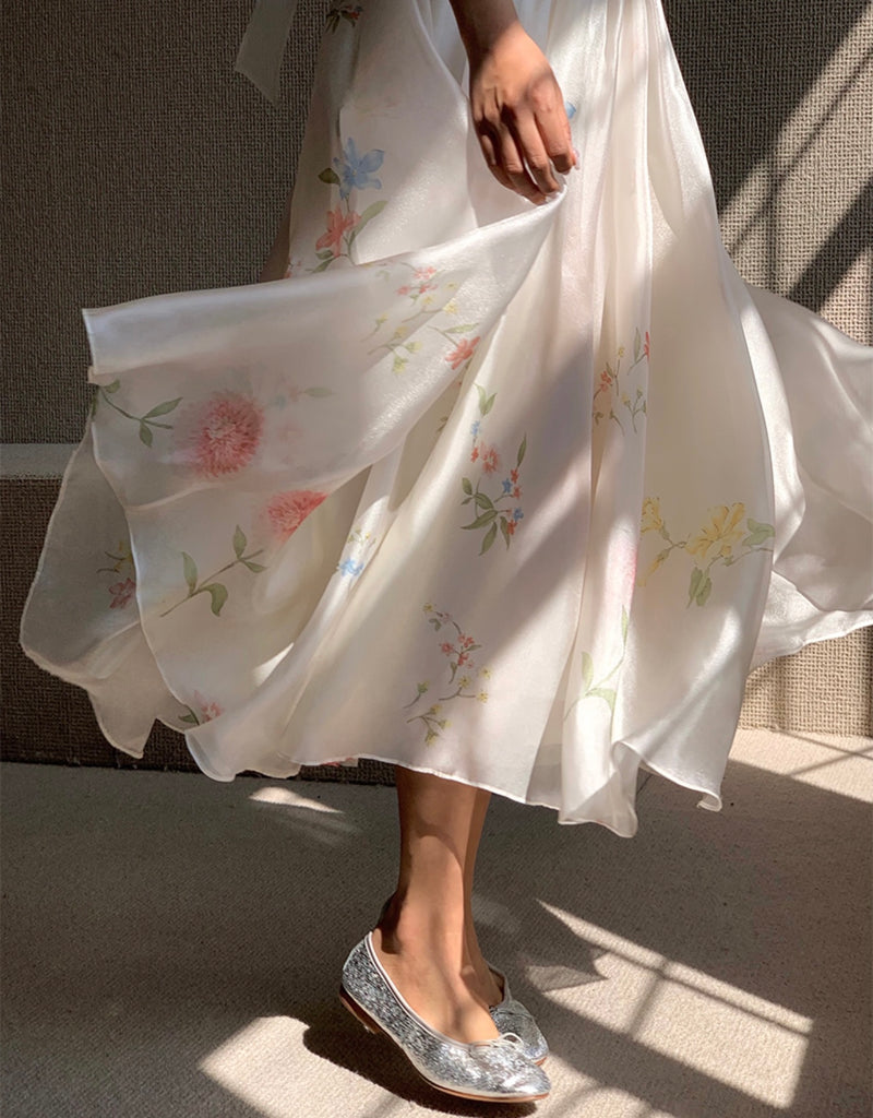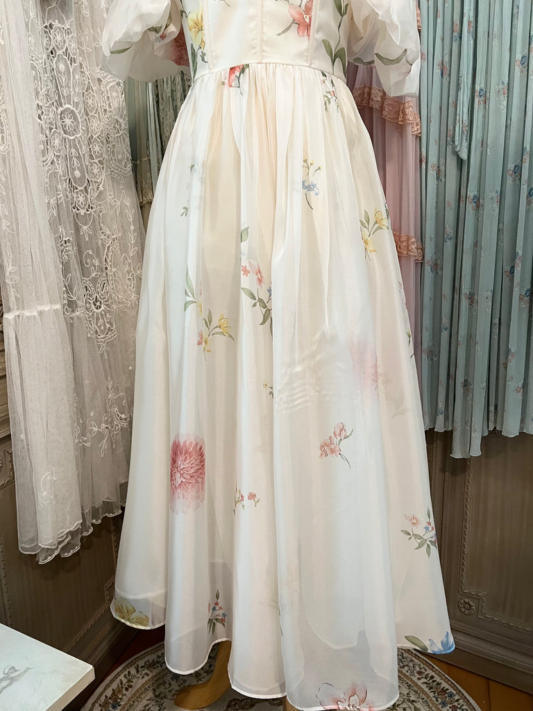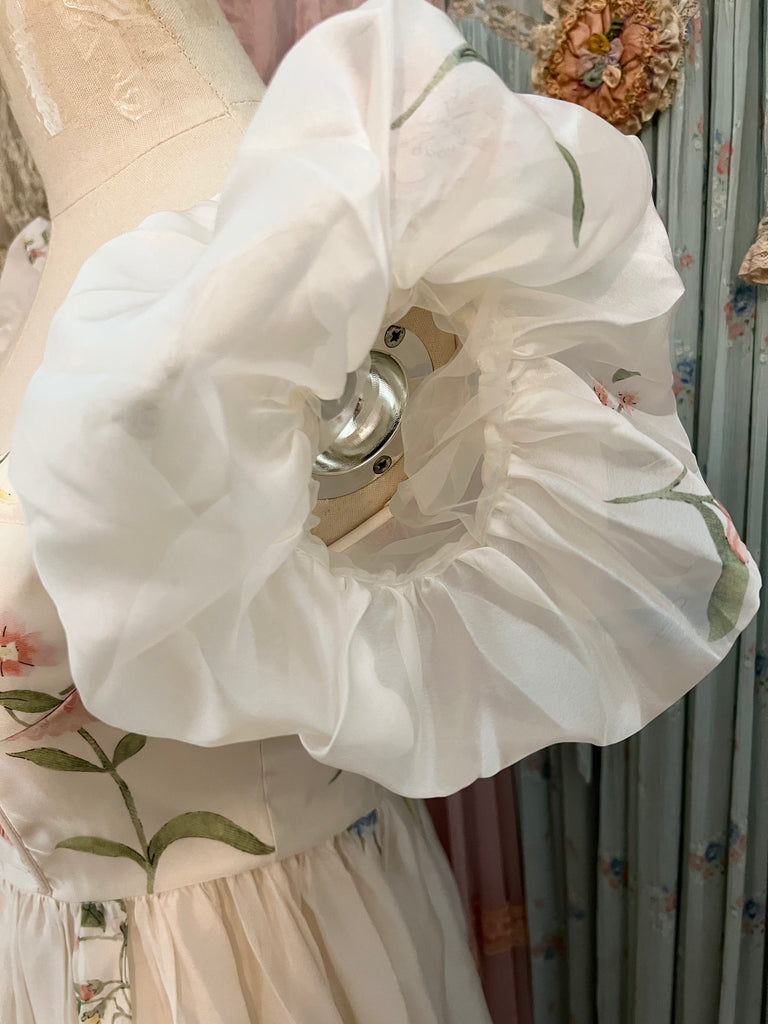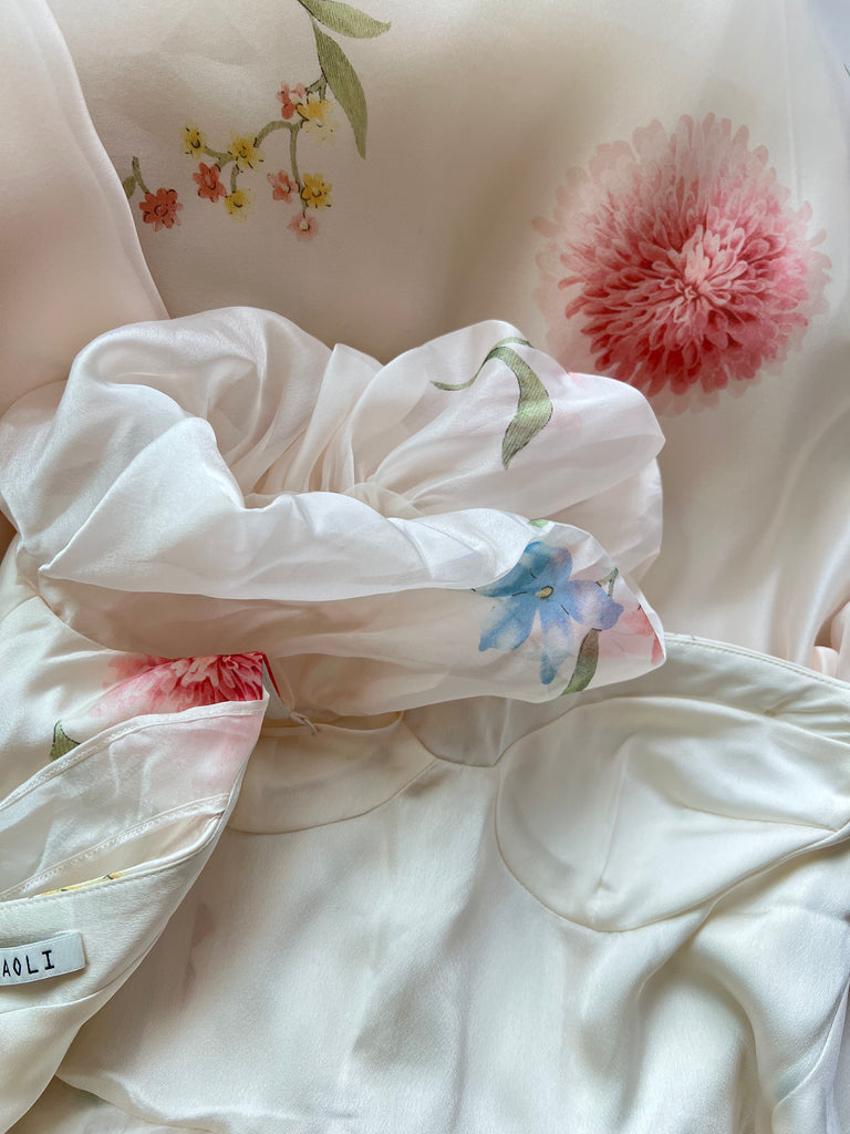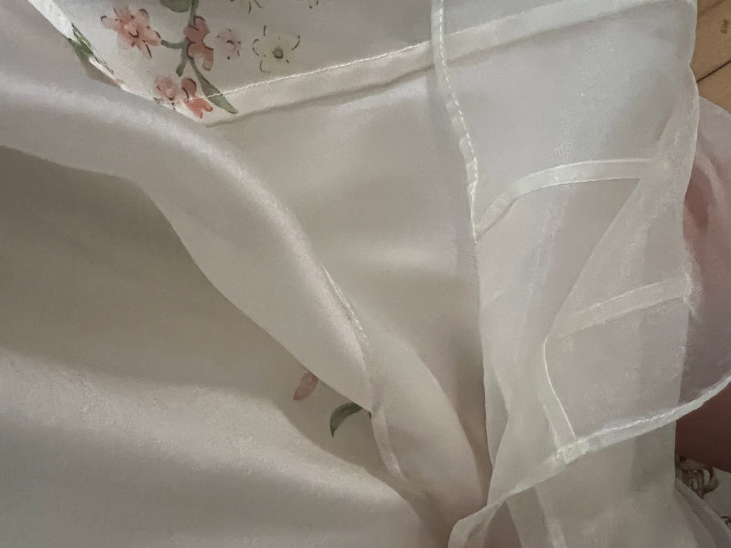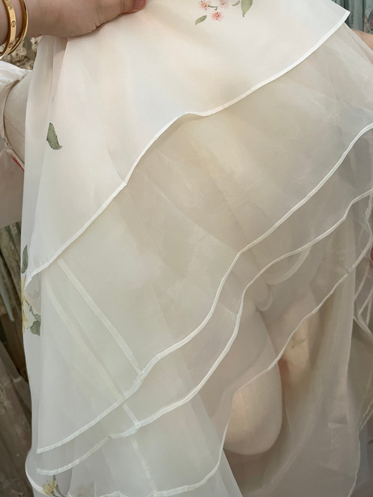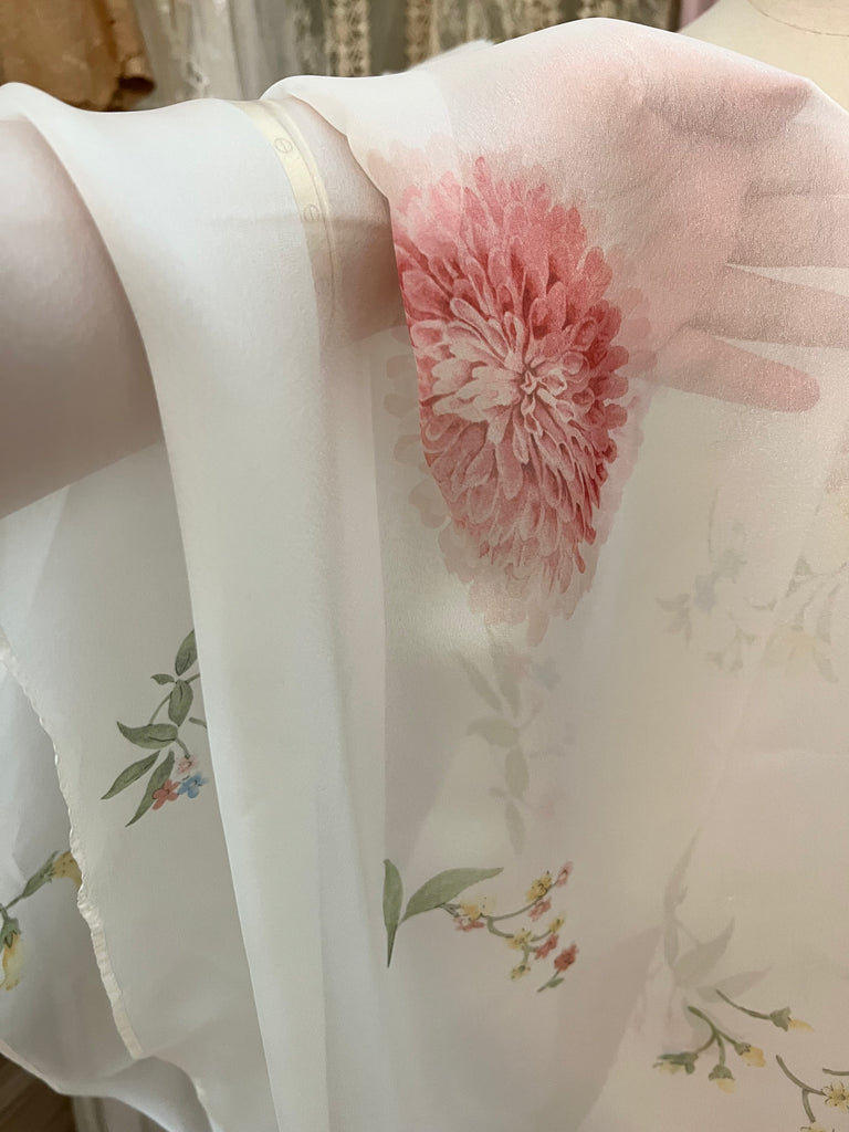 including floating floral printed fabric with 3 thin layers of chiffon fabric underneath