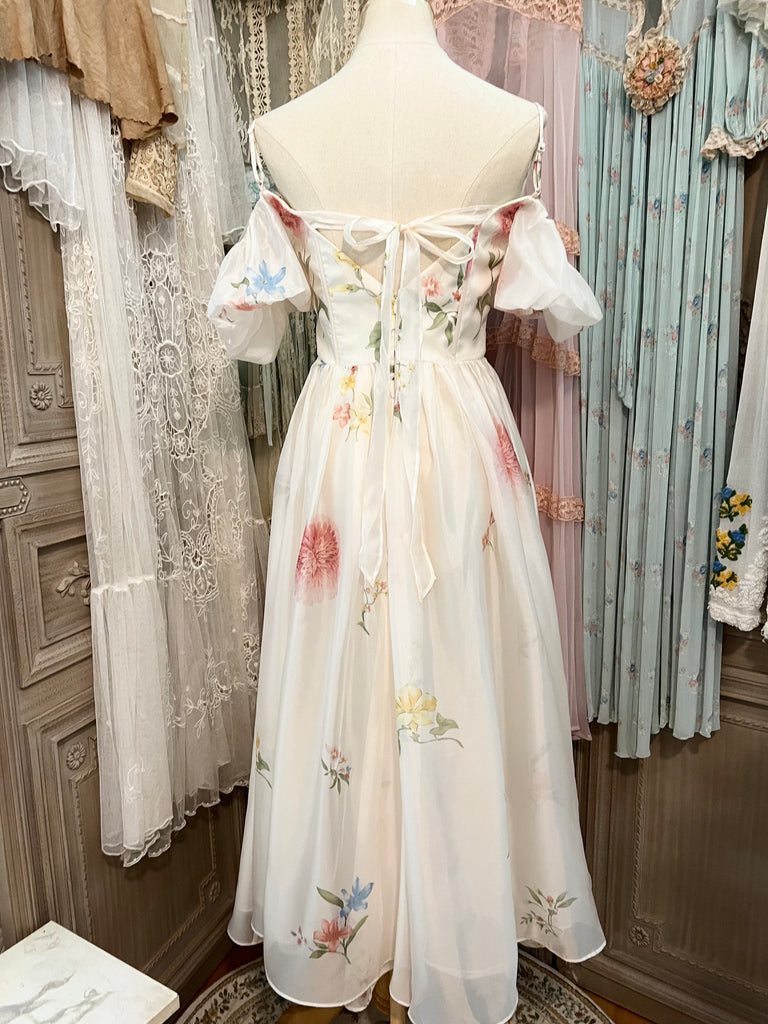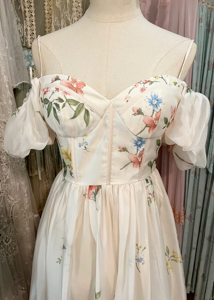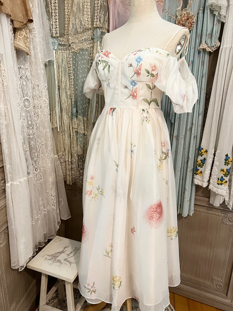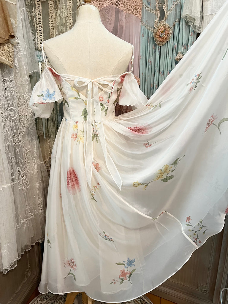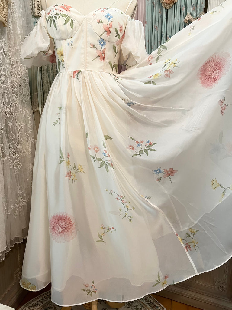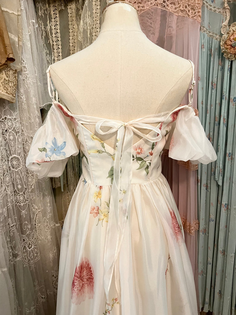 including floating floral printed fabric with 3 thin layers of chiffon fabric underneath