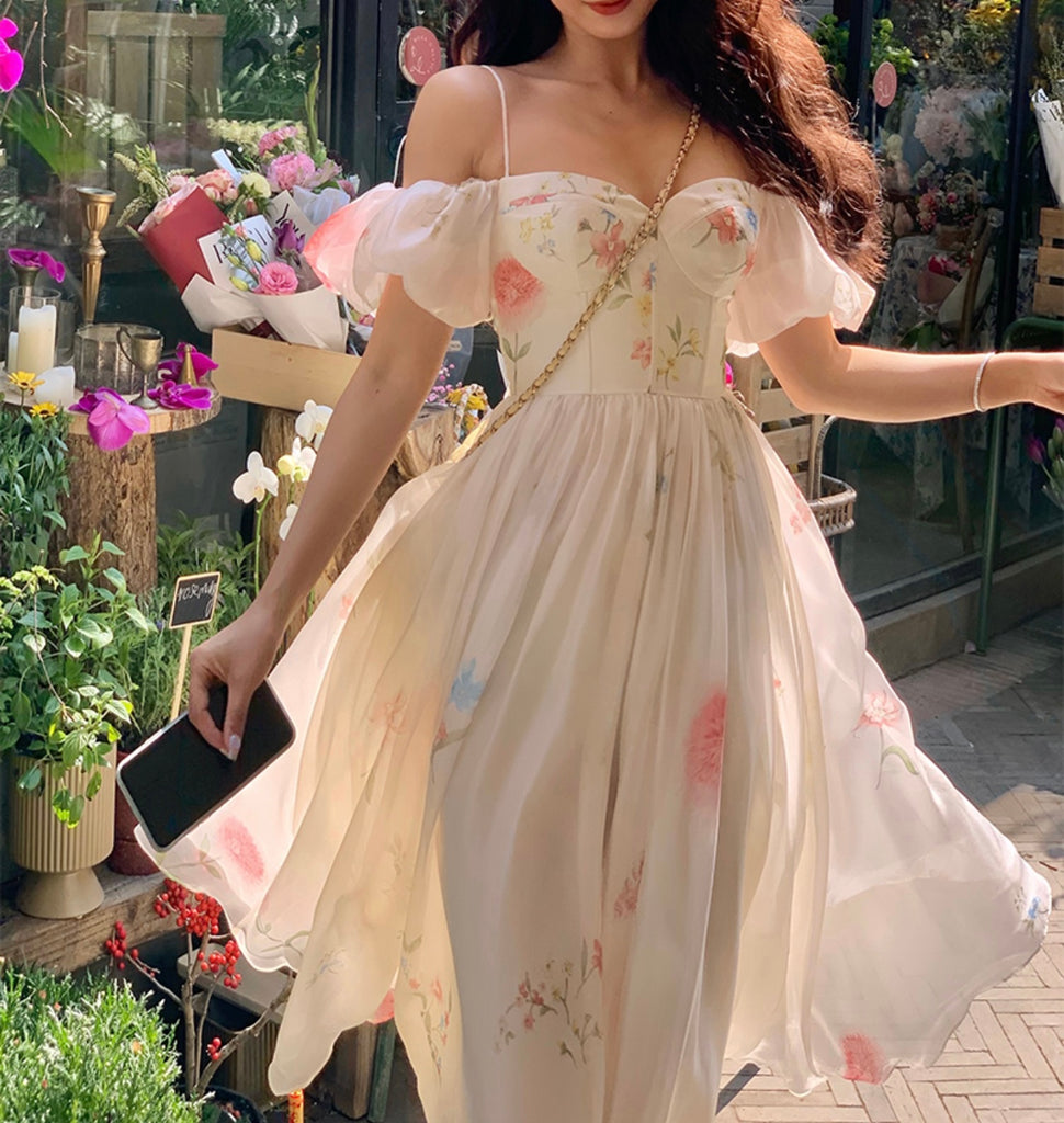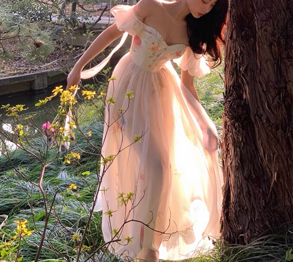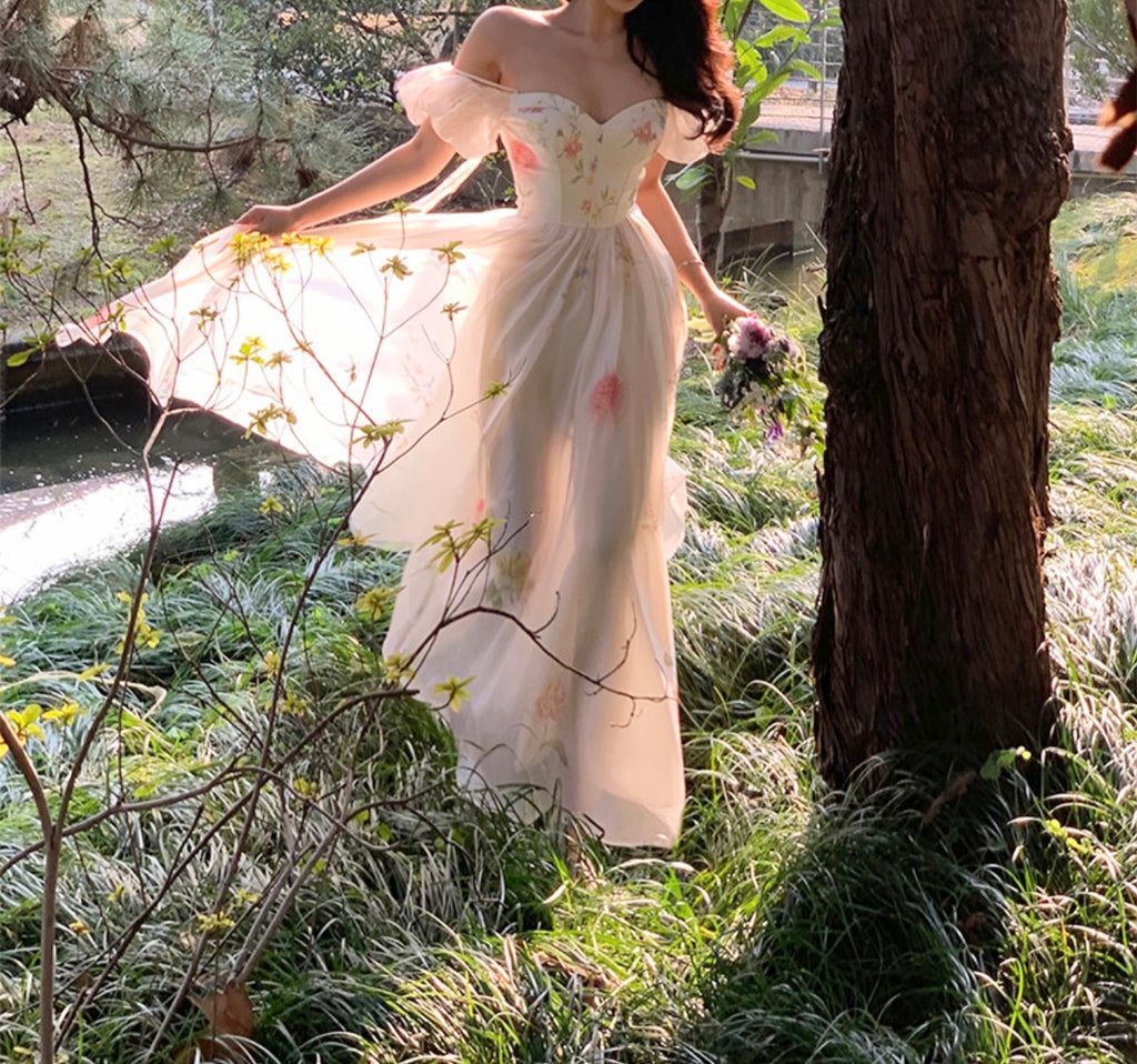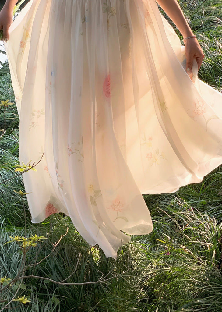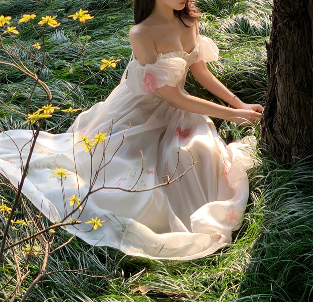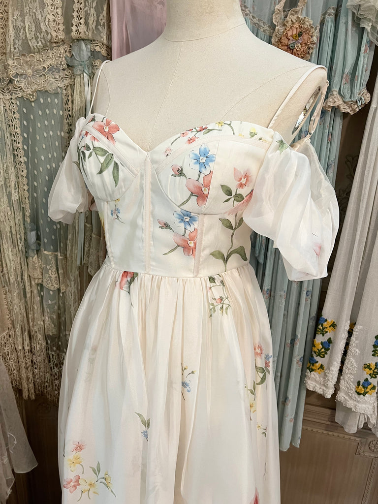 including floating floral printed fabric with 3 thin layers of chiffon fabric underneath