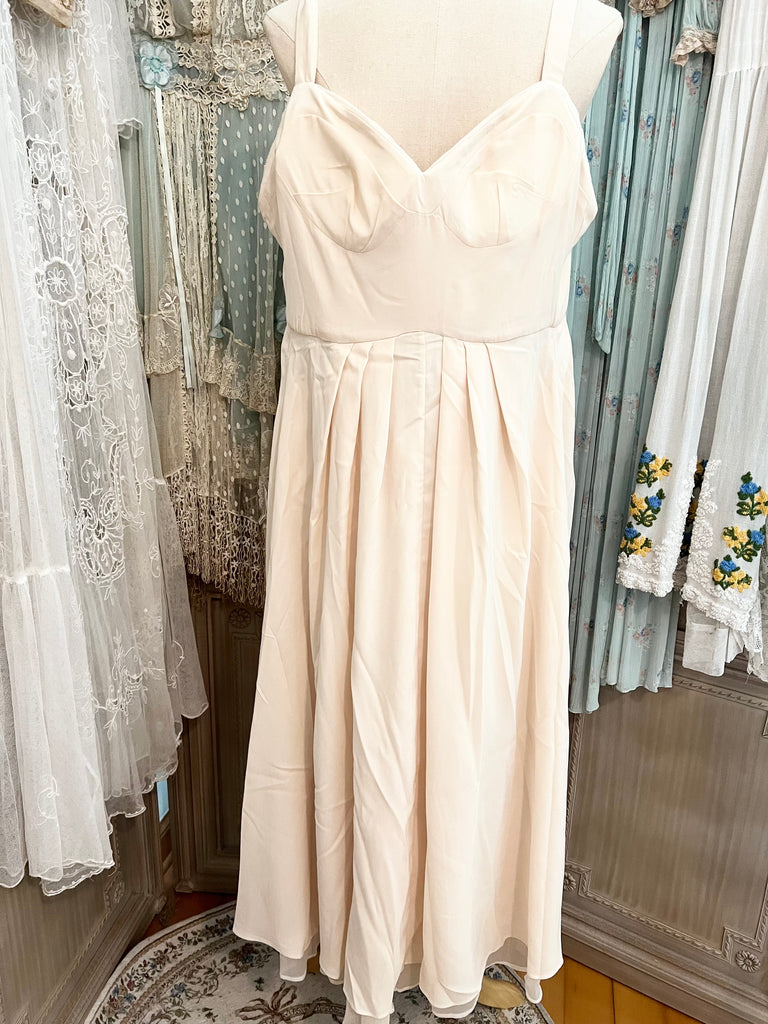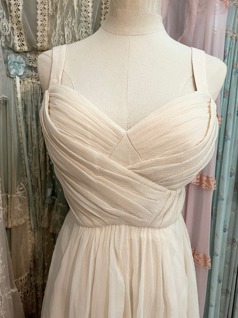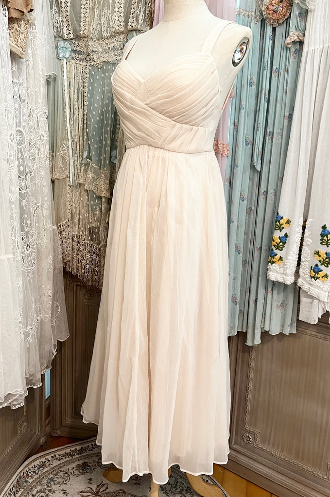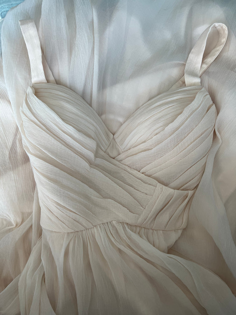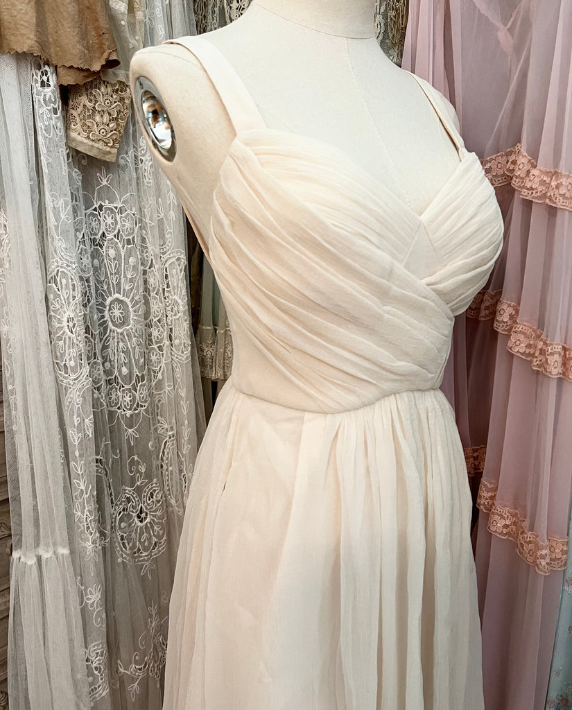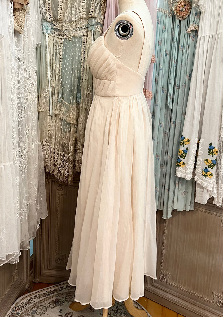 dress composed of pleats on the bodice in 3 layers and two layers on the lower dress