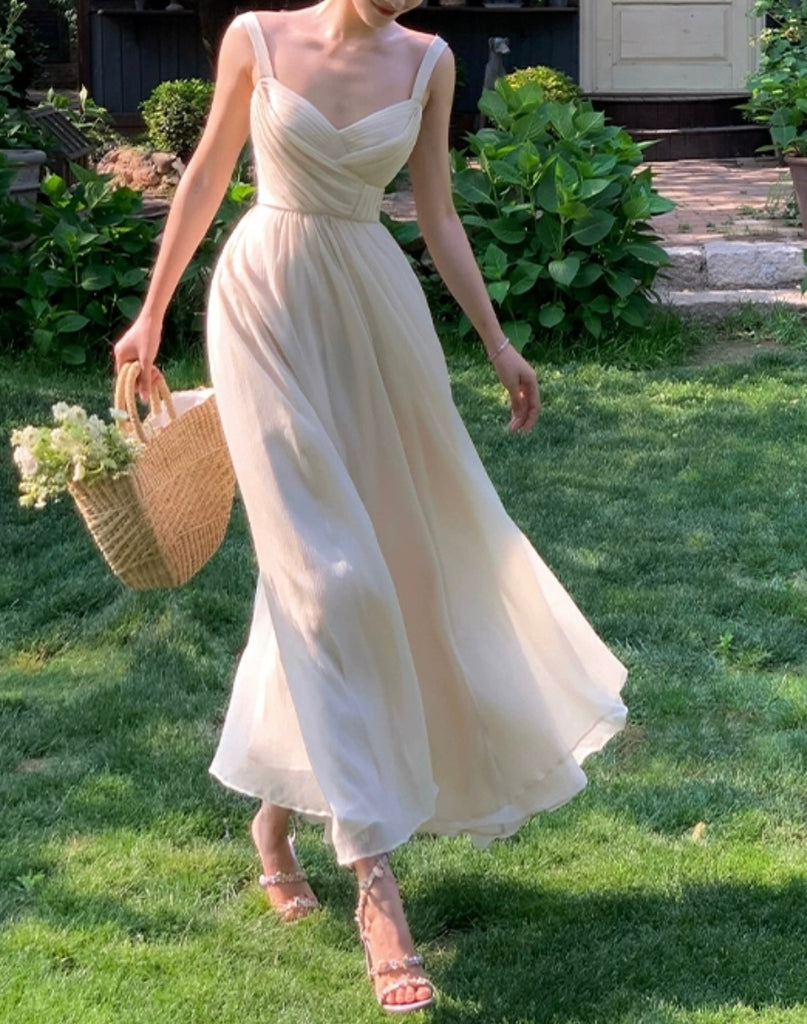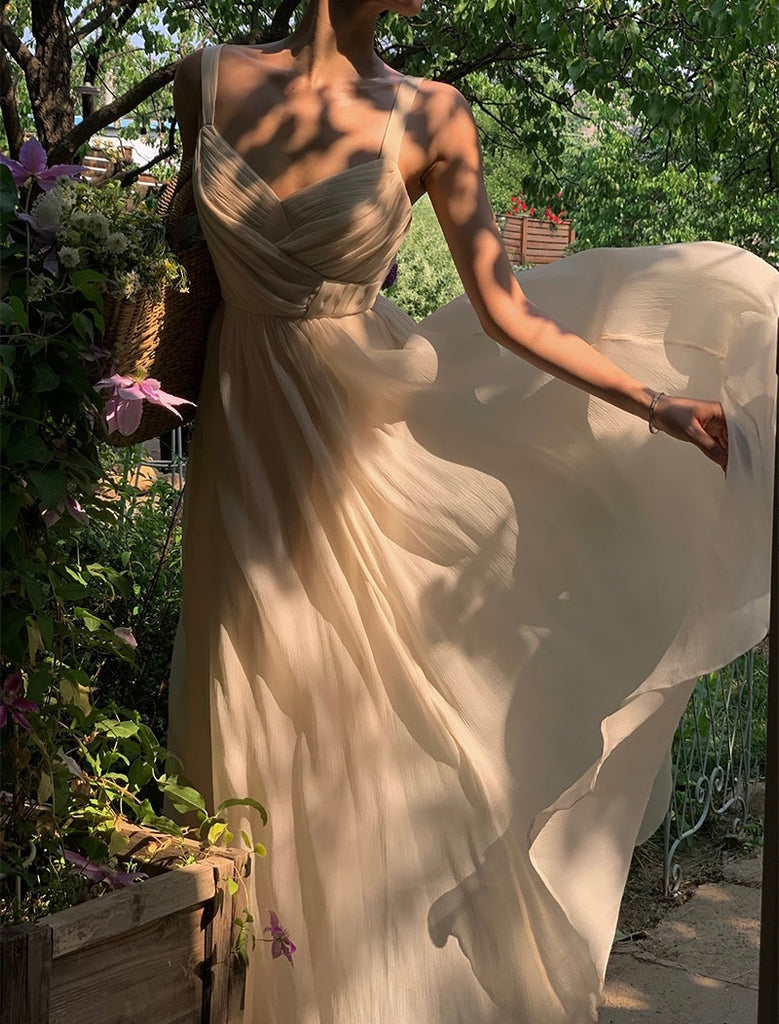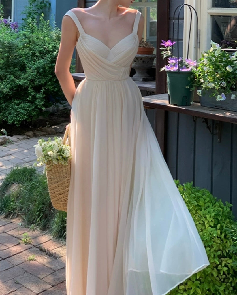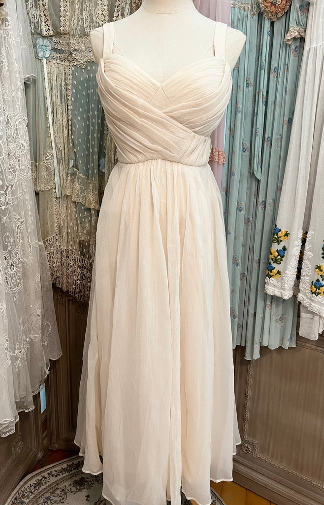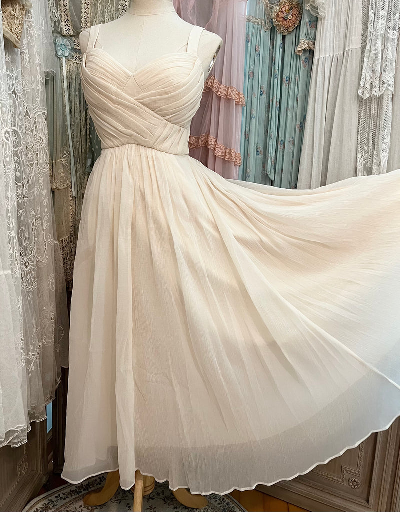dress composed of pleats on the bodice in 3 layers and two layers on the lower dress
