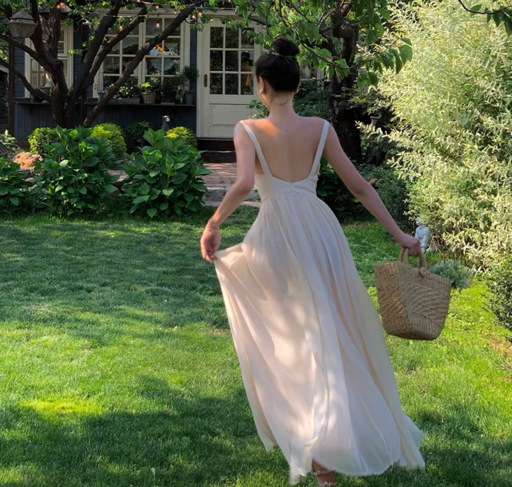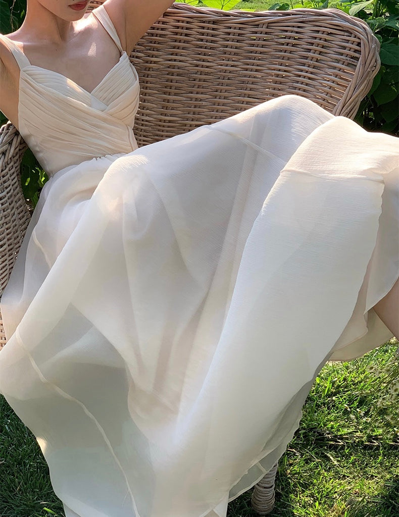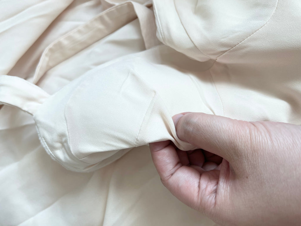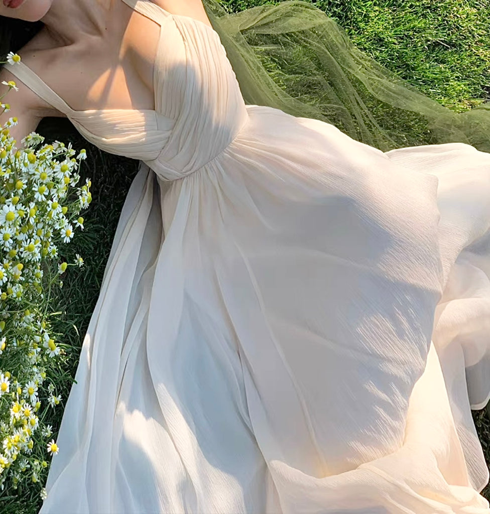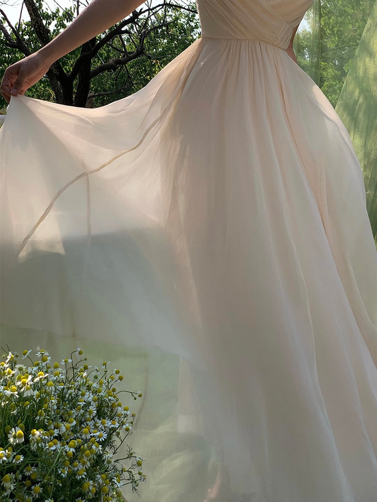 dress composed of pleats on the bodice in 3 layers and two layers on the lower dress