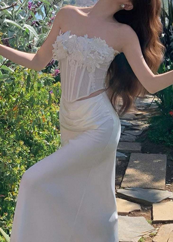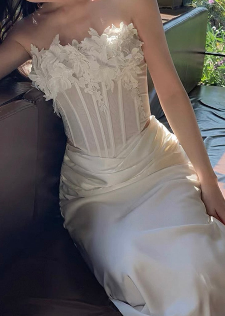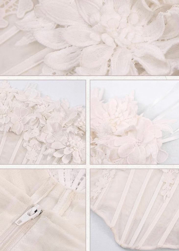 corsets assembled with fish bones, unique 3D appliques, mesh fabrics