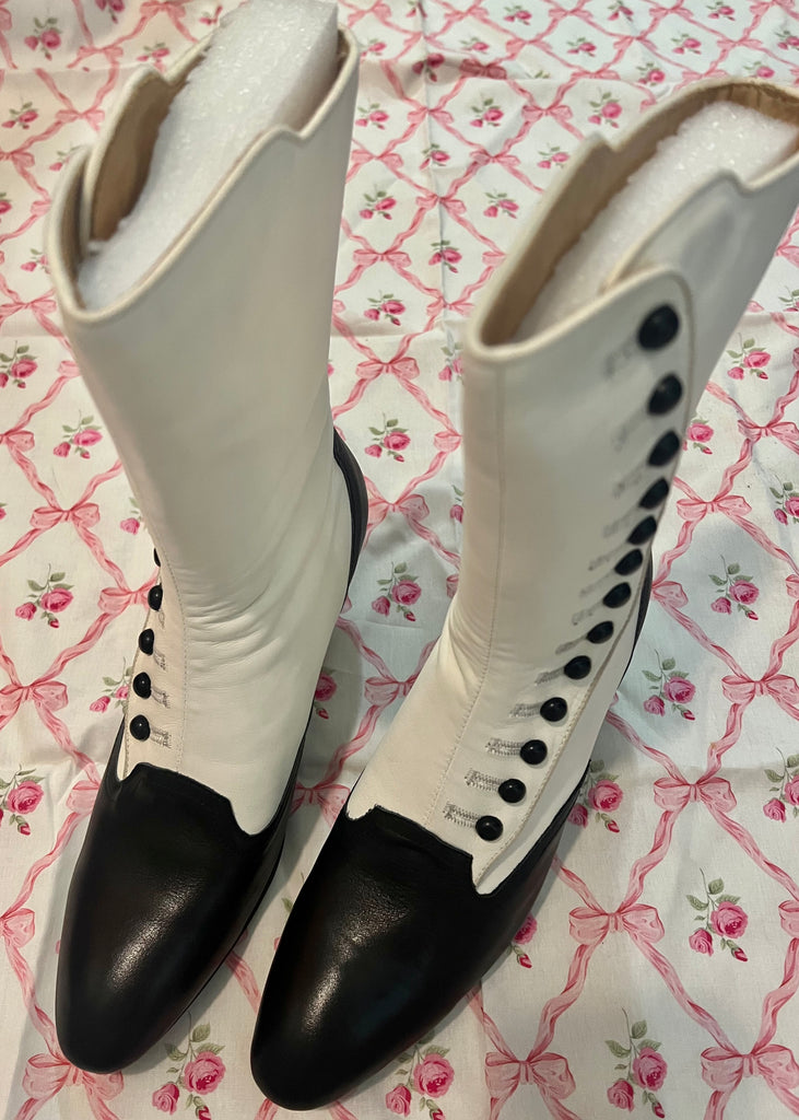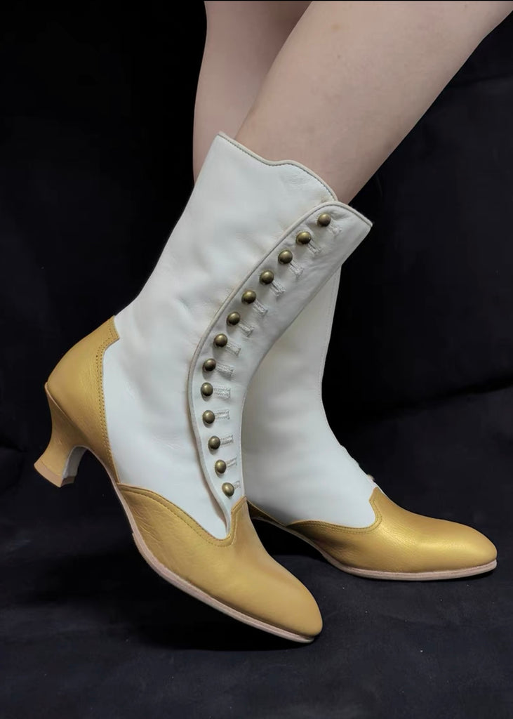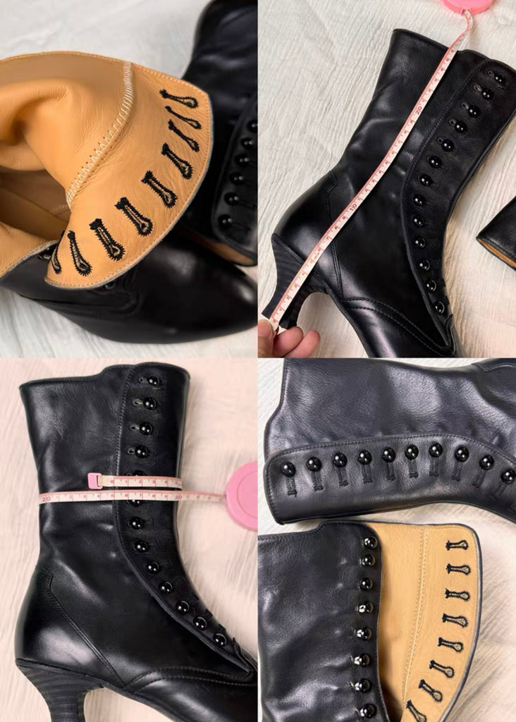 Classic Victorian buttons boots are reproductions of Victorian style boots from early 1900s. This unique look great for accurate reenactment, historical costuming or a boho shabby style combining with a modern outfit. They are sustainable , each piece is hand polished by professional shoemaker so there is slightly color difference on each pair to create a unique vintage look, comfortable to wear it for a whole day,