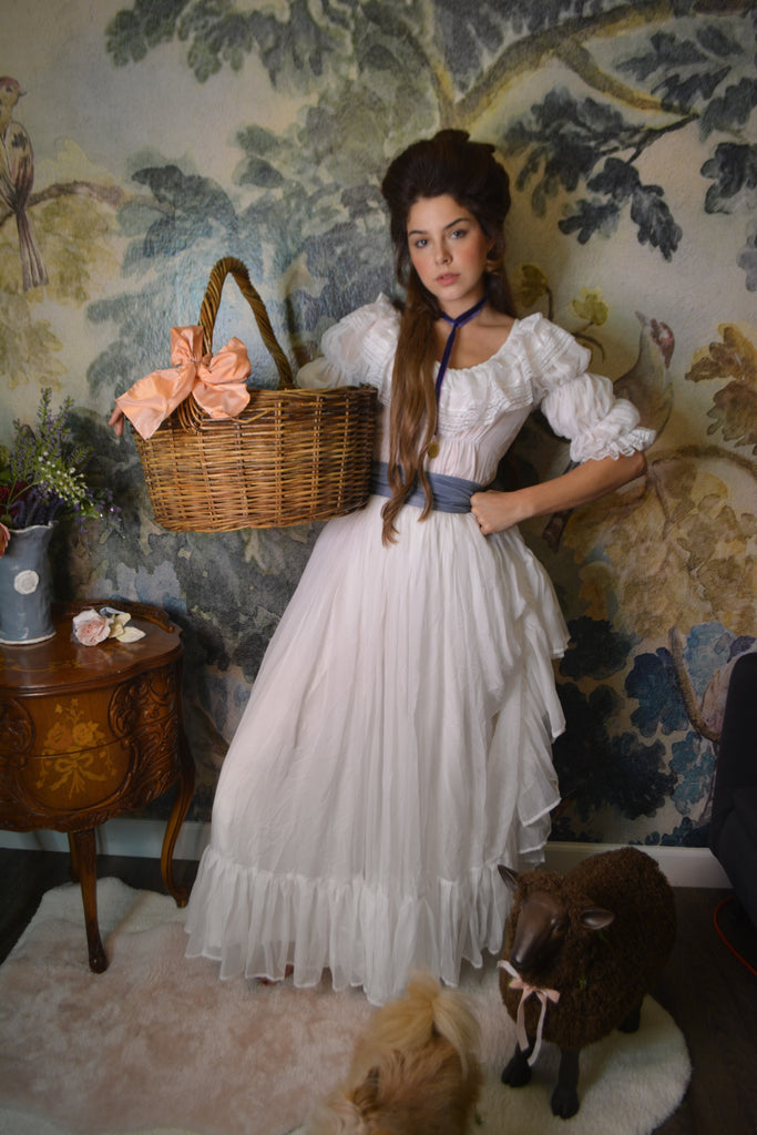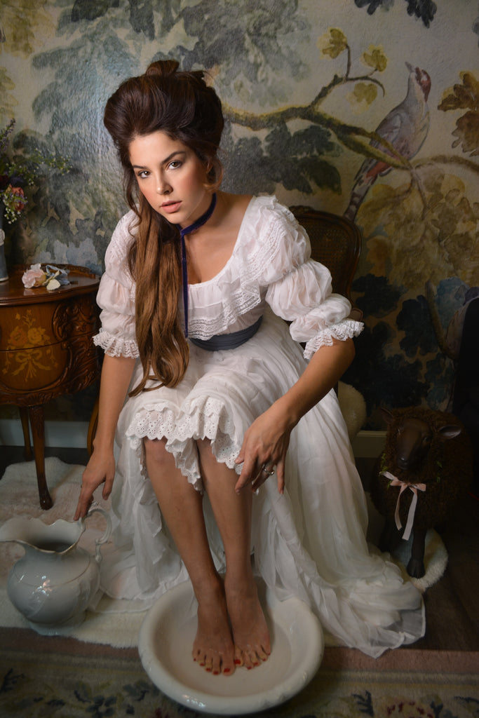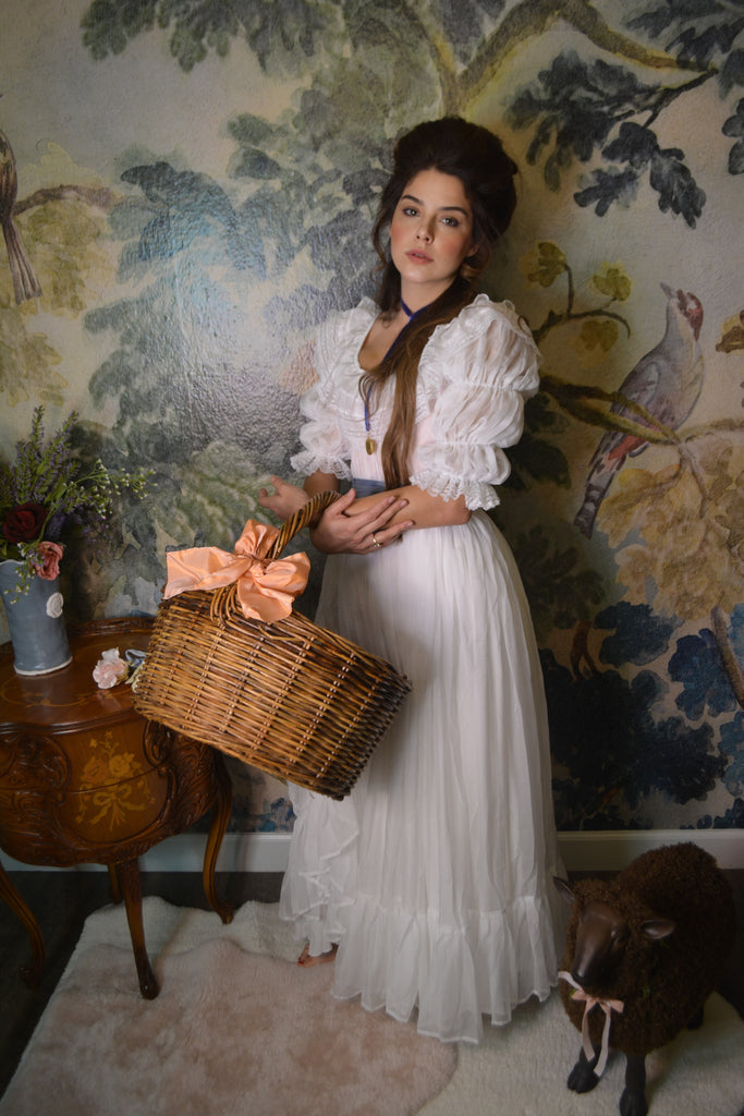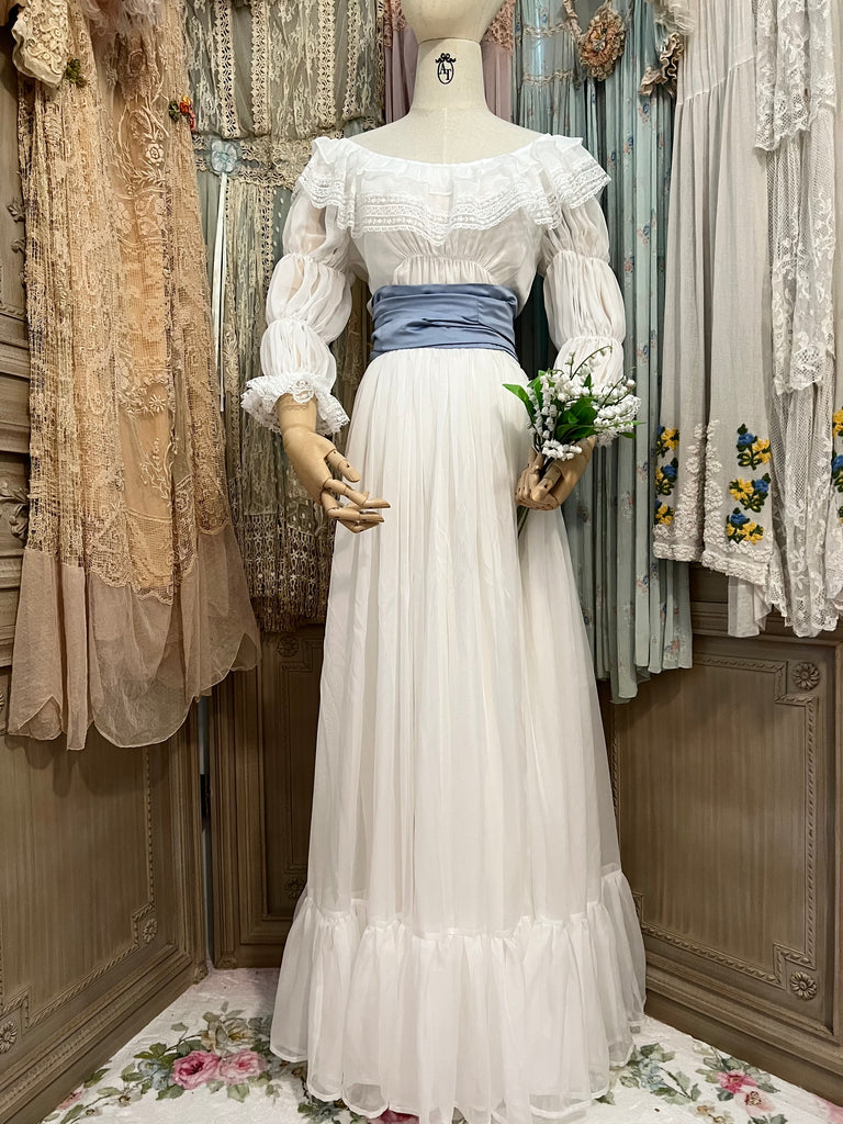 This dress is inspired and kinda replica of the chemise where the French Queen, Marie Antoinette wore in the portrait by the artist Elizabeth Vigee-Lebrun in 1783. “La Reine en Gaulle” was included in the public exhibition at the salon du Louvre
