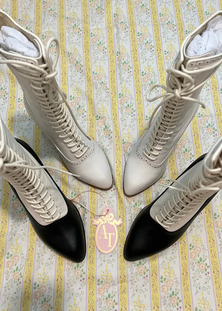 Classic Victorian pointy boots are reproductions of Victorian style boots from early 1900s. This unique look great for accurate reenactment, historical costuming or a boho shabby style combining with a modern outfit. They are sustainable , each piece is hand polished by professional shoemaker so there is slightly color difference on each pair to create a unique vintage look, comfortable to wear it for a whole day,