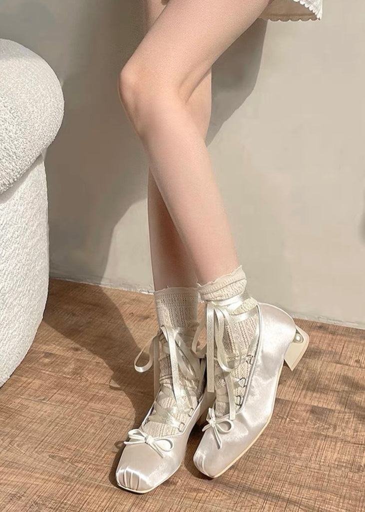 Composition: poly satin (shell) / fabric lining (insole), rubber sole