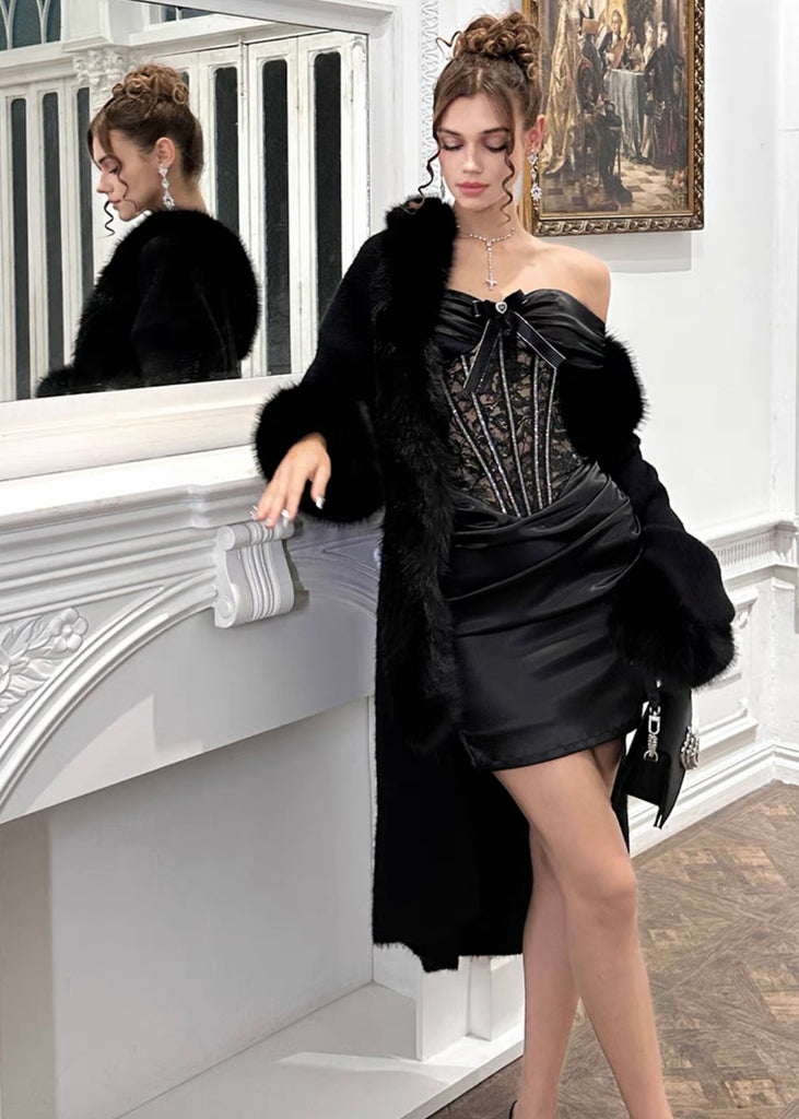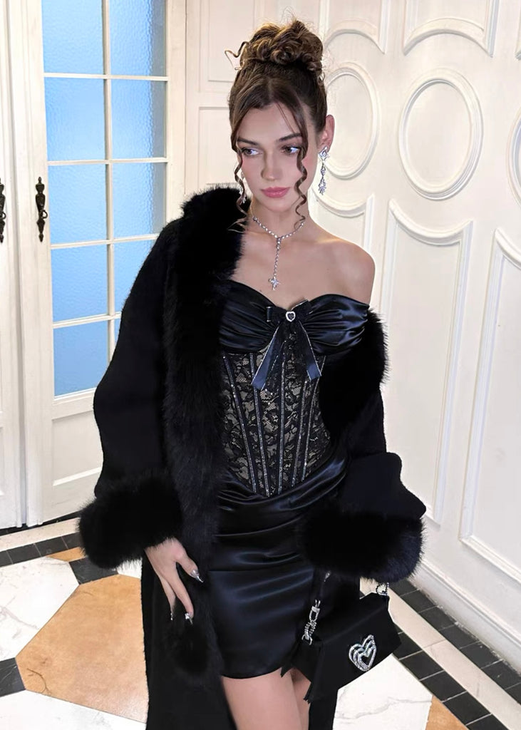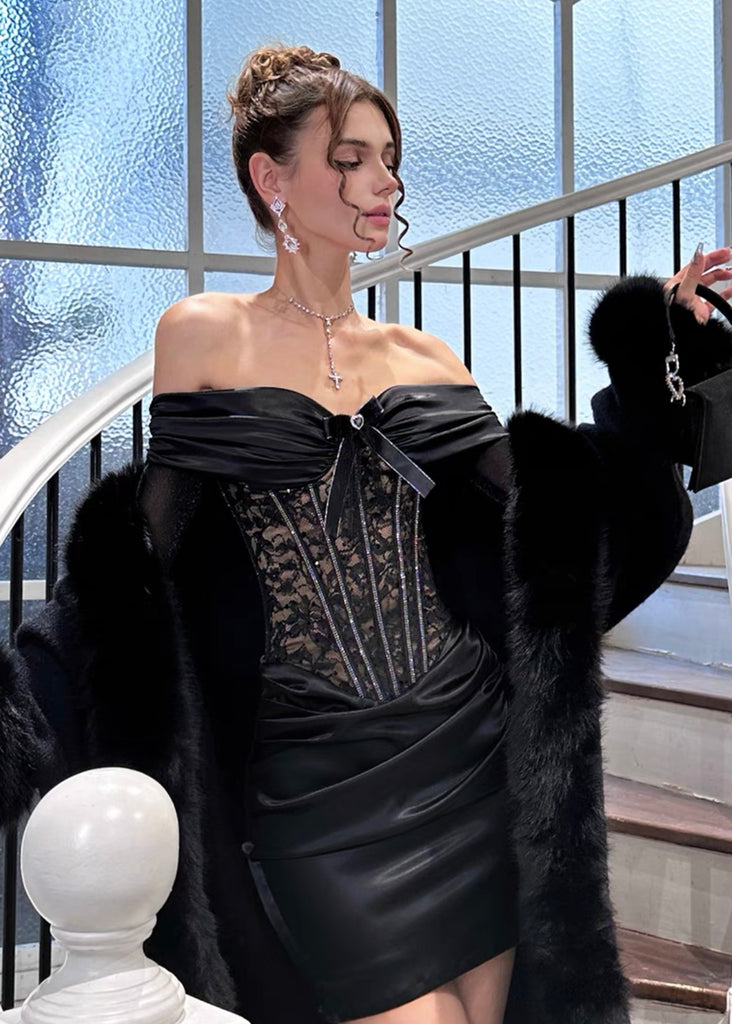 Composition: polyester satin, polyester lace, resin (shell) / polyester (lining)