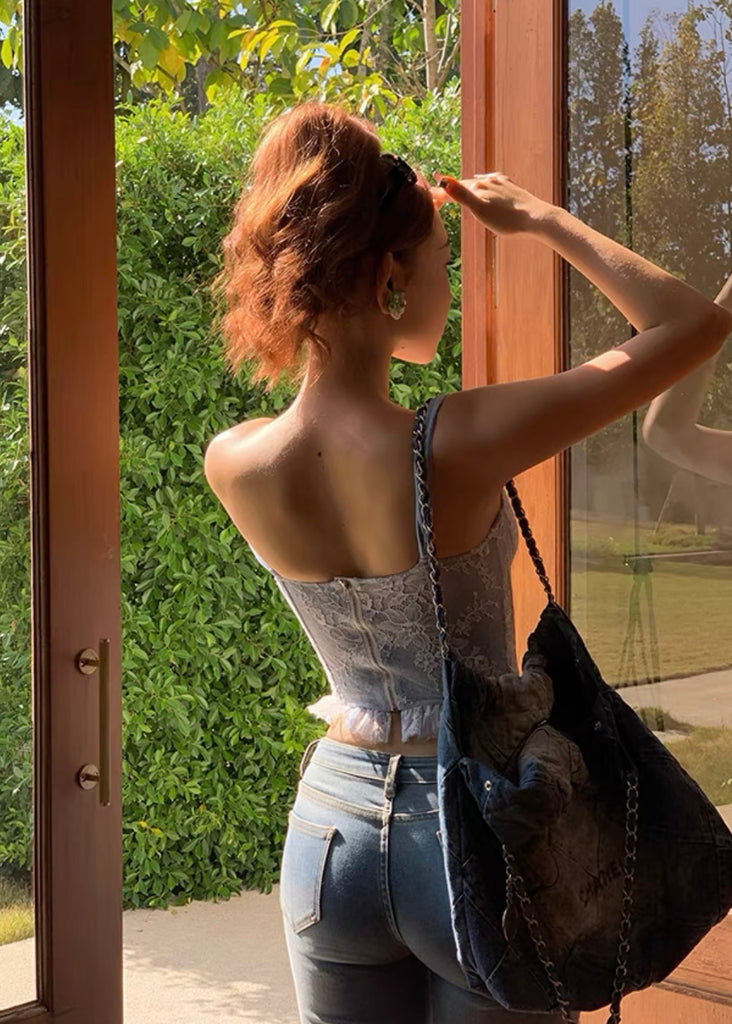 corsets assembled with fish bones, lace up straps, unique floral mesh fabrics