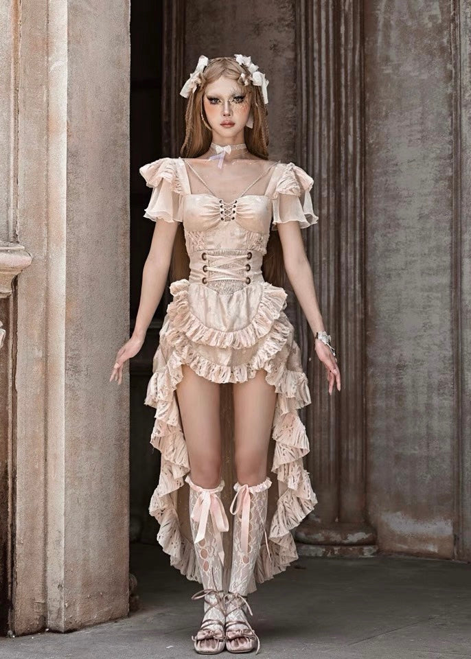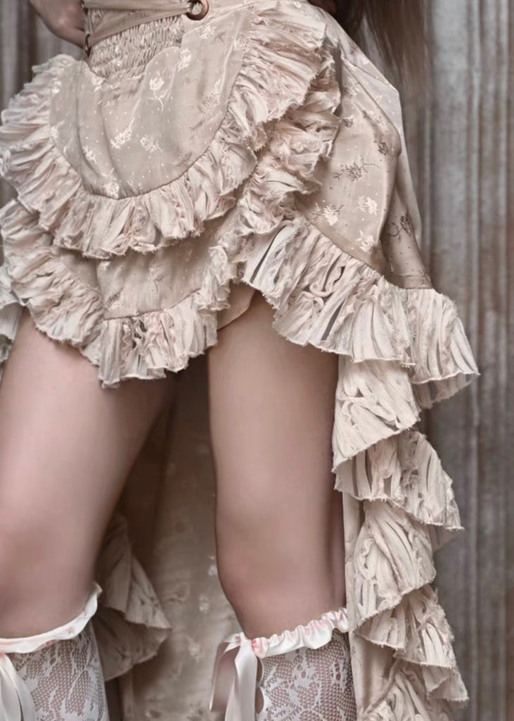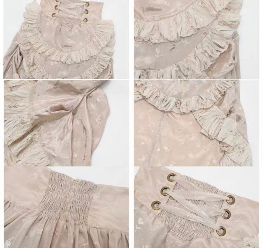 Smocked back on the back of skirt waist, lacing up on front