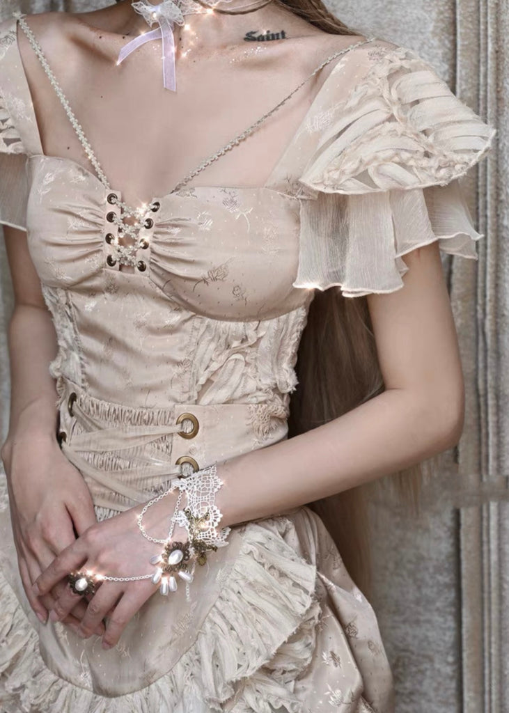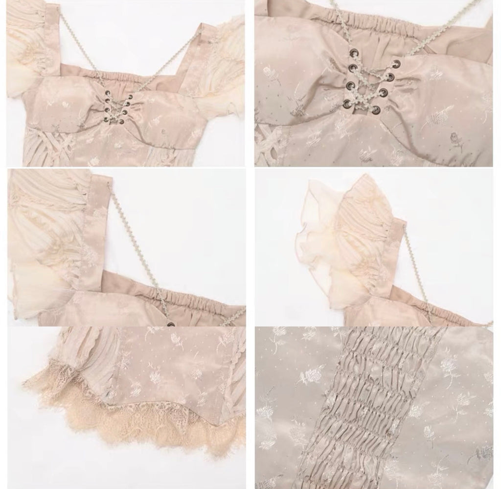 smocked back bodice with bones for better structuring of corset top