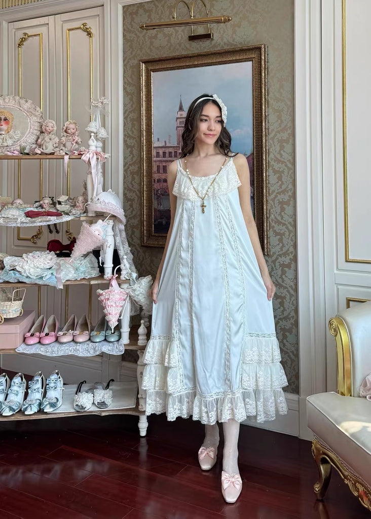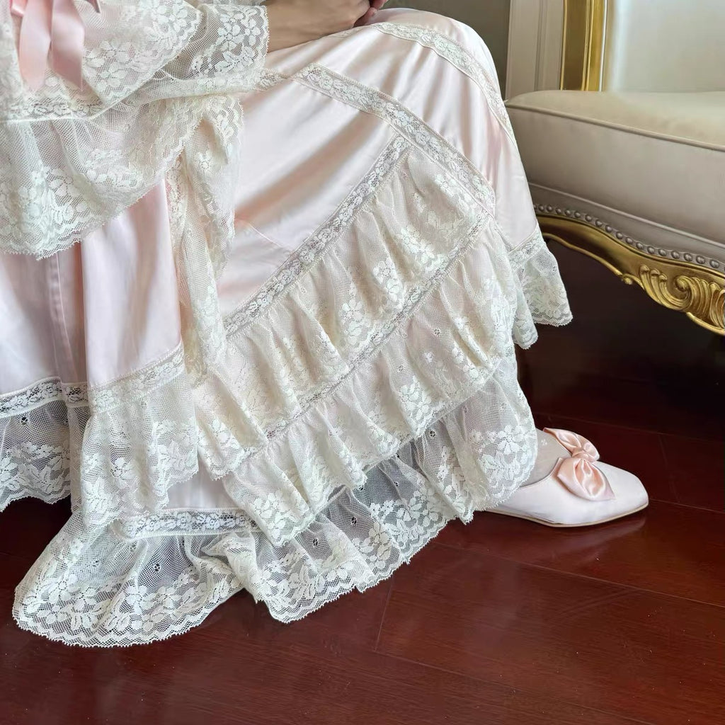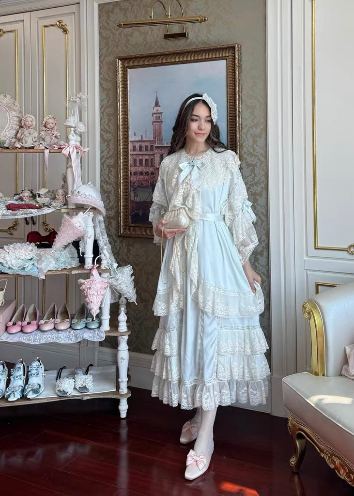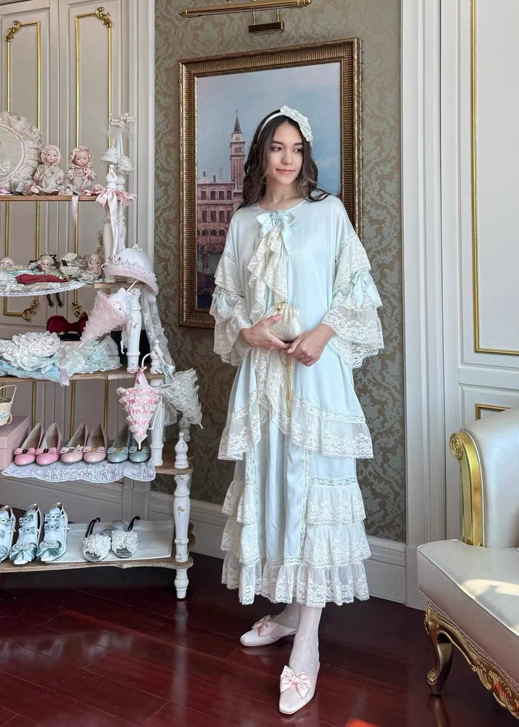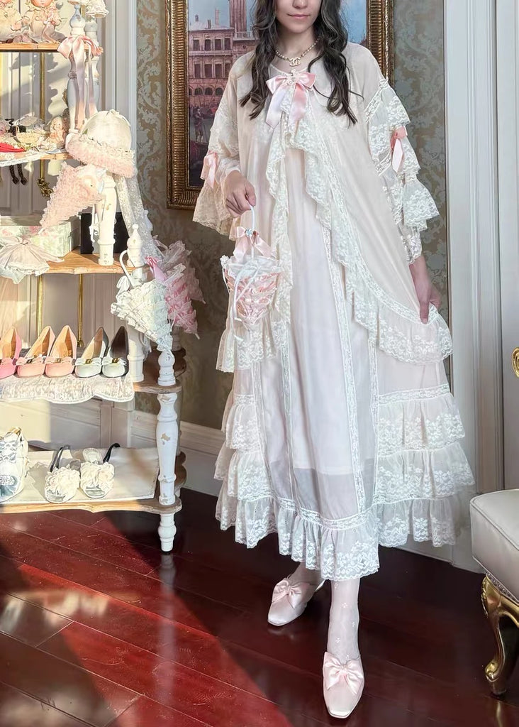 Price Includes bed jacket, slip dress, 2 pcs of detachable bowknots for cuffs, 1 pc of detachable brooch, 1 ribbon (waist ties).