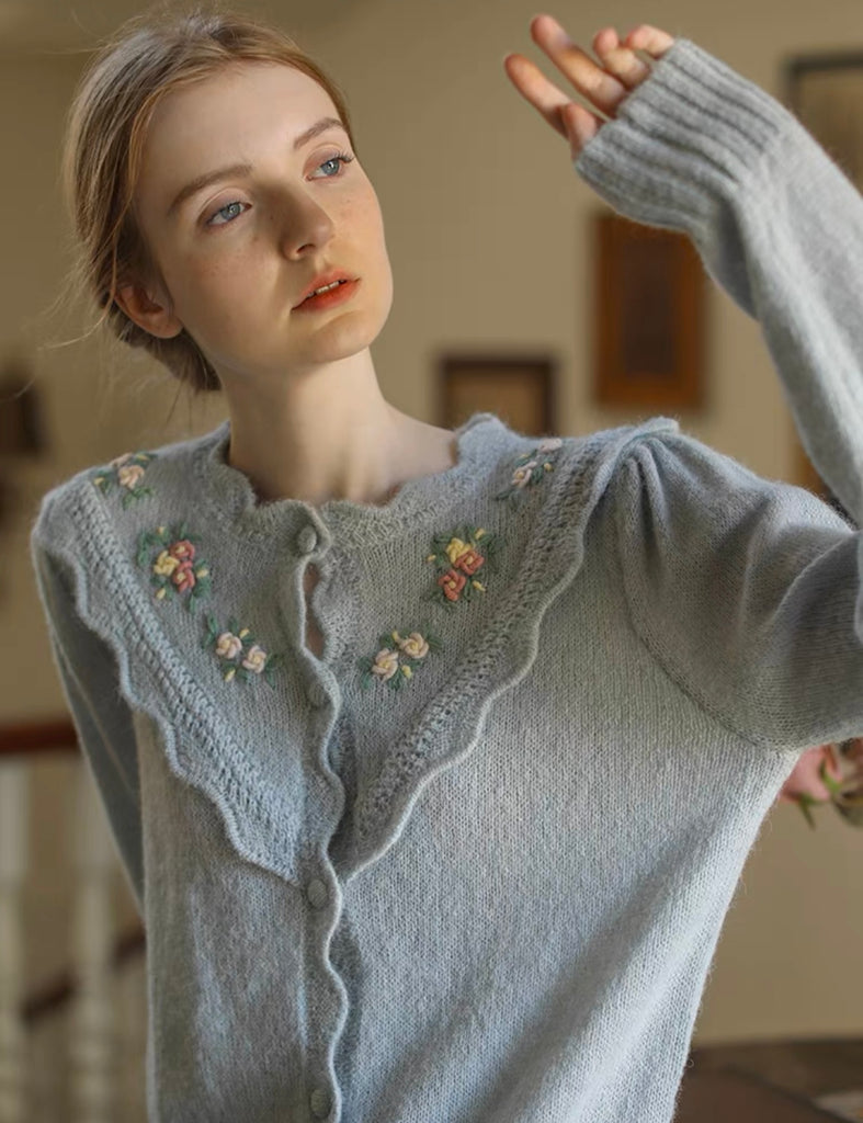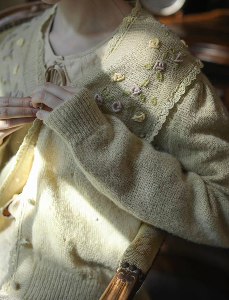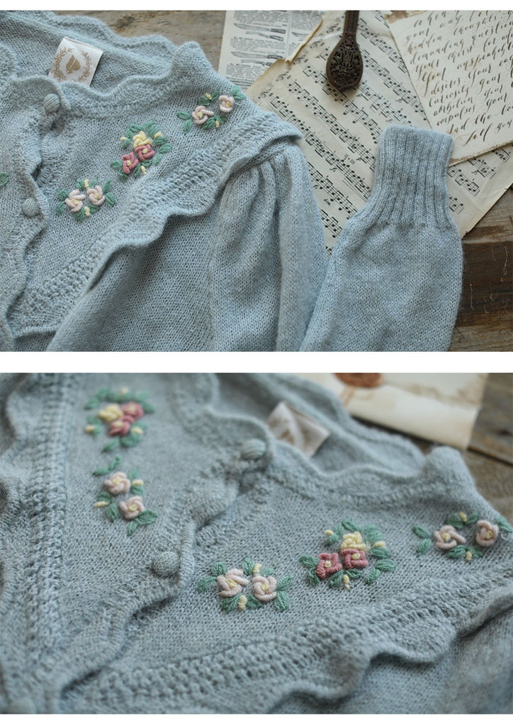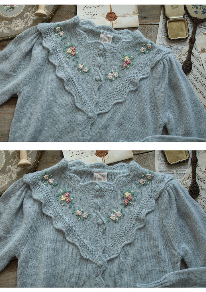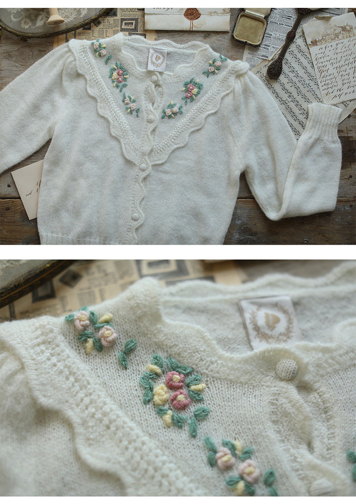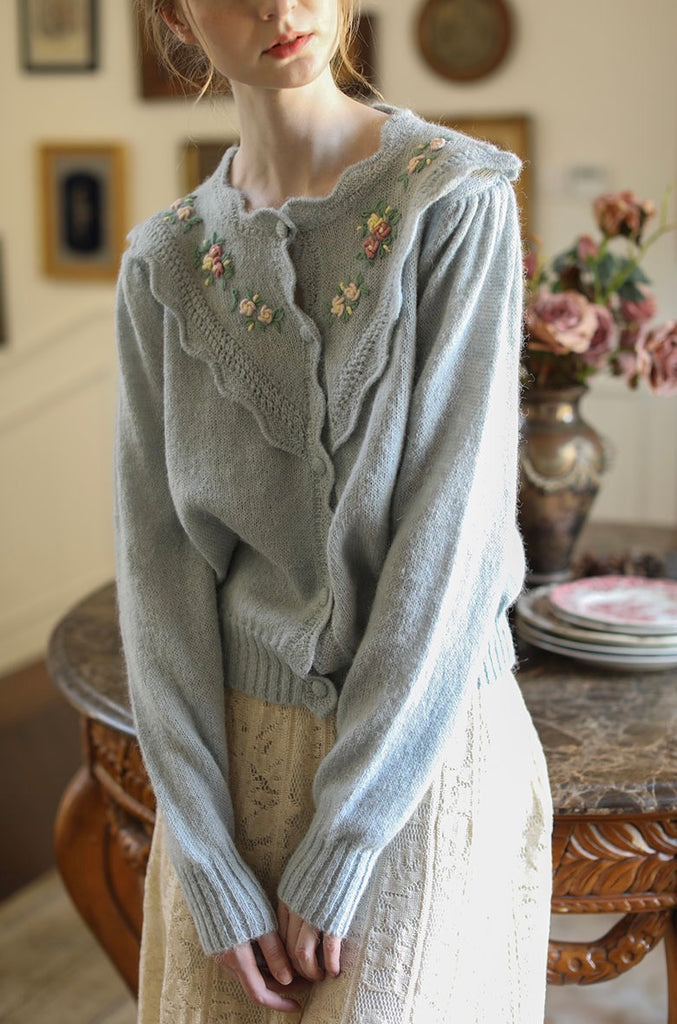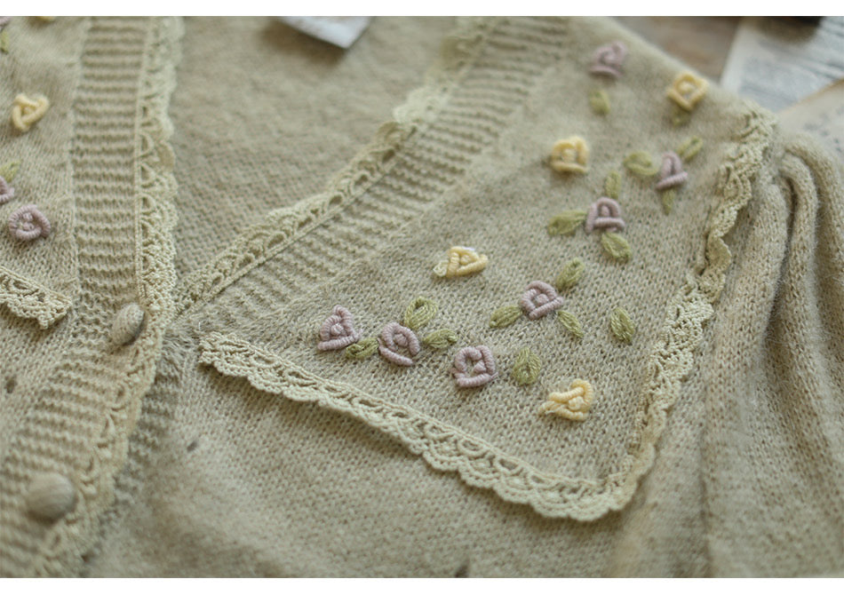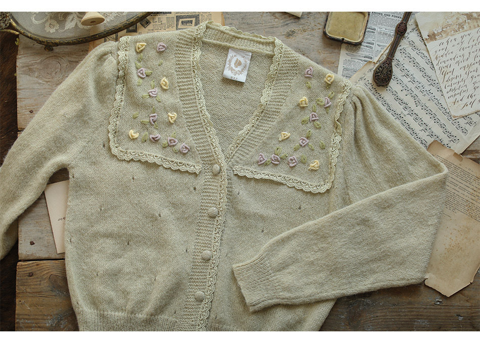 composition for the cardigan : 25% acrylic 15% wool 60% nylon