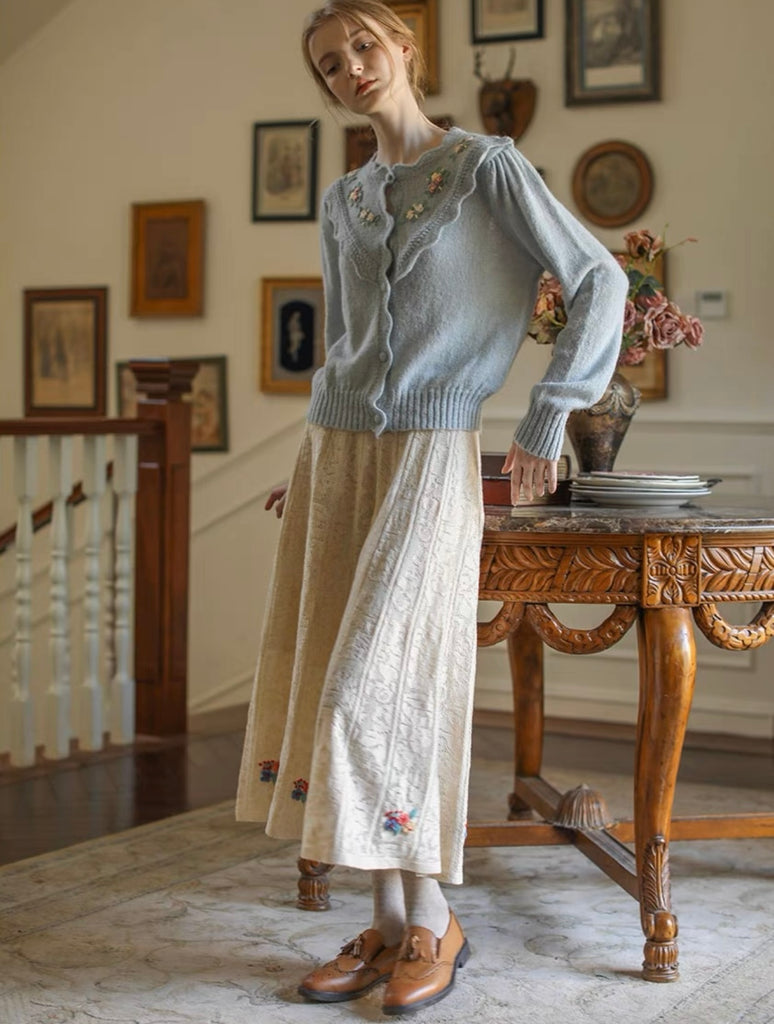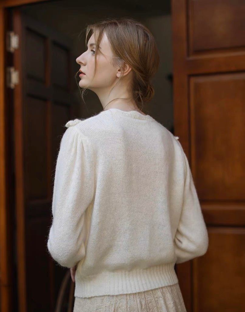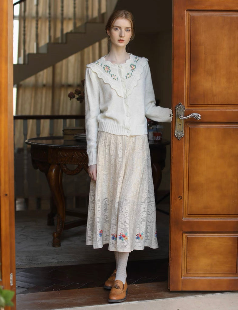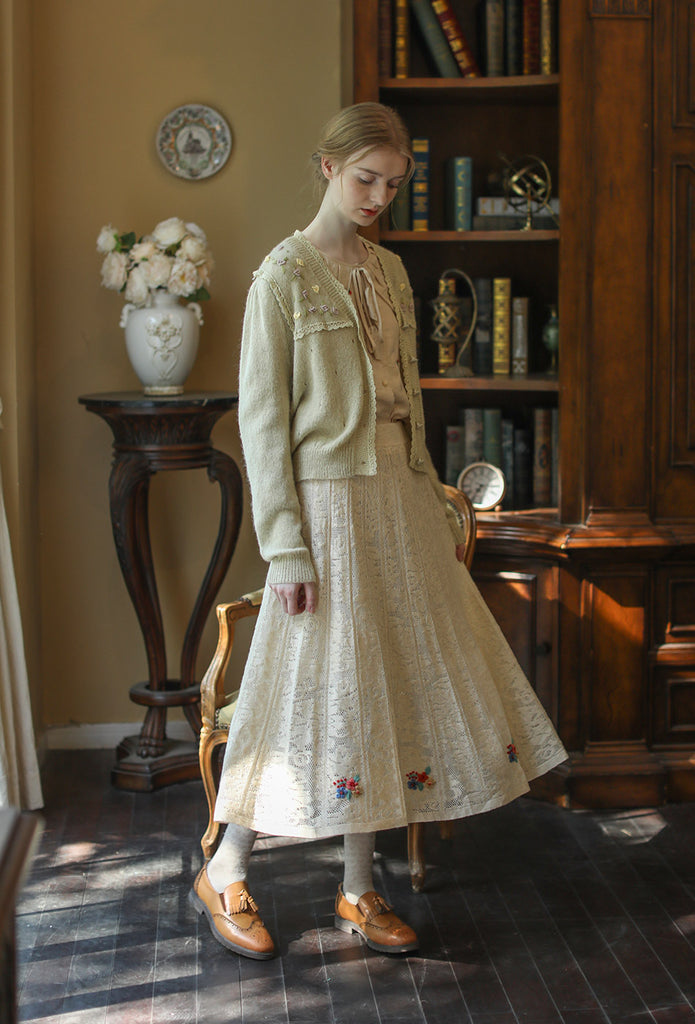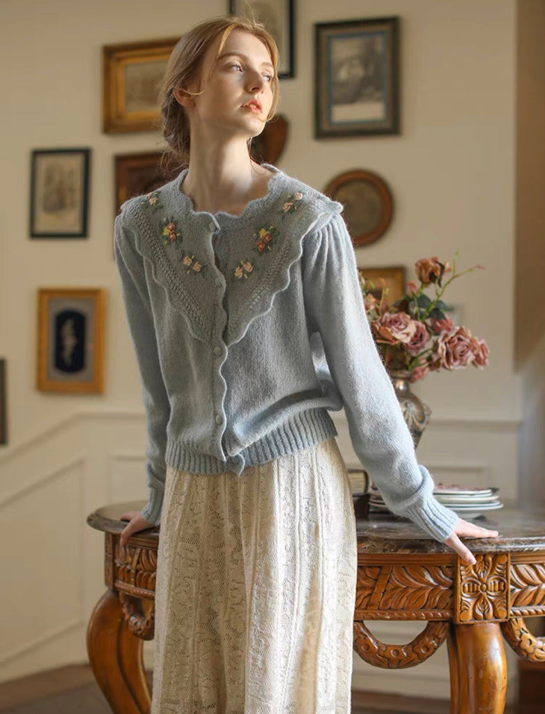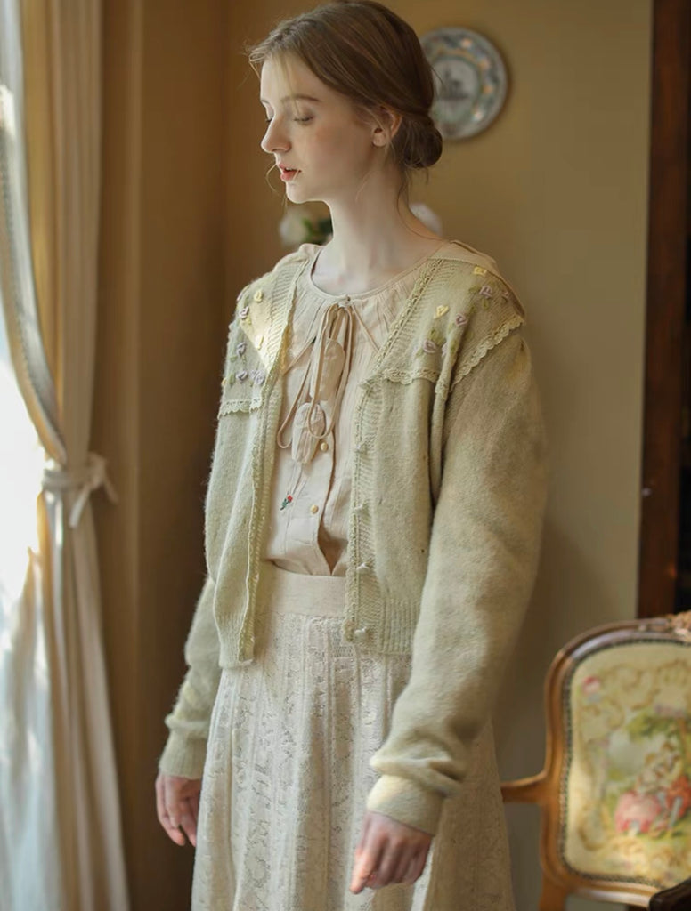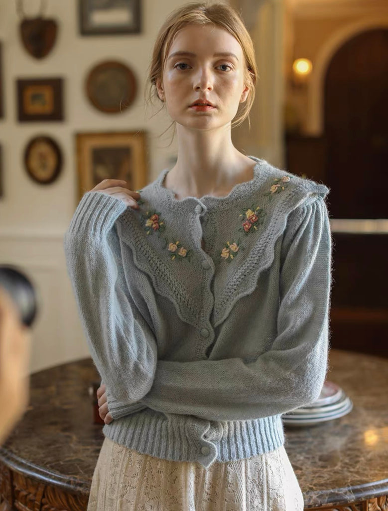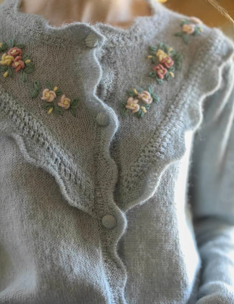 composition for the cardigan : 25% acrylic 15% wool 60% nylon
