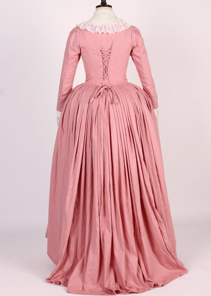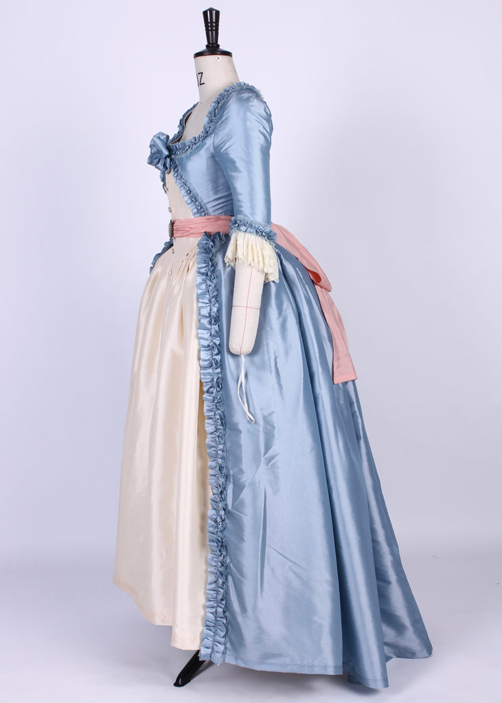 This Caroline gown is inspired by robe a l’anglaise and robe a la polonaise which are woman's garment of the late 17th century or a similar revival style of the 1870s, rococo style, consisting of a gown with a cutaway, overskirt, lacing up on back bodice ,worn over an petticoat or underskirt . The style originated in Poland and became popular throughout Europe and America during the 17th / 18th century. It is now considered a classic example of 18th-century fashion. This style was frequently worn by the queen of France - Marie Antoinette with fancy decorations 🎀