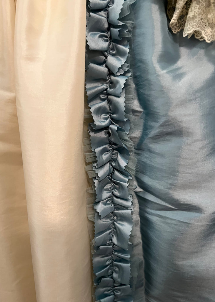 Blue color composition: taffeta (skirt ), netting (lace trims), taffeta (overdress)