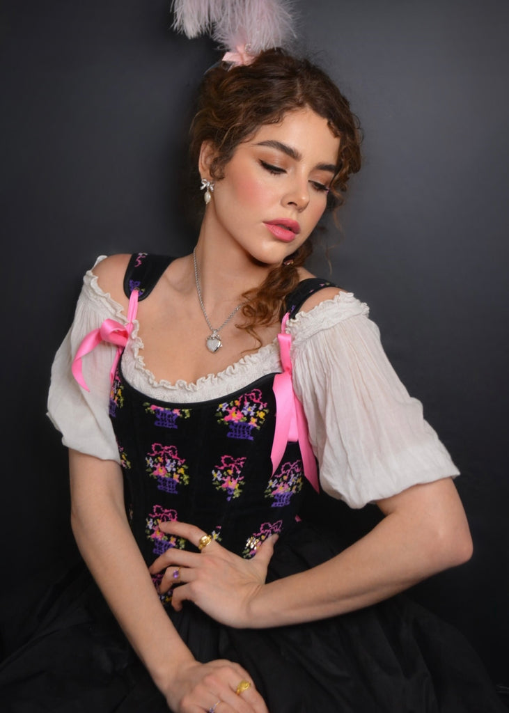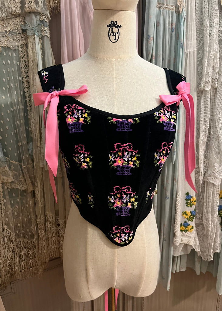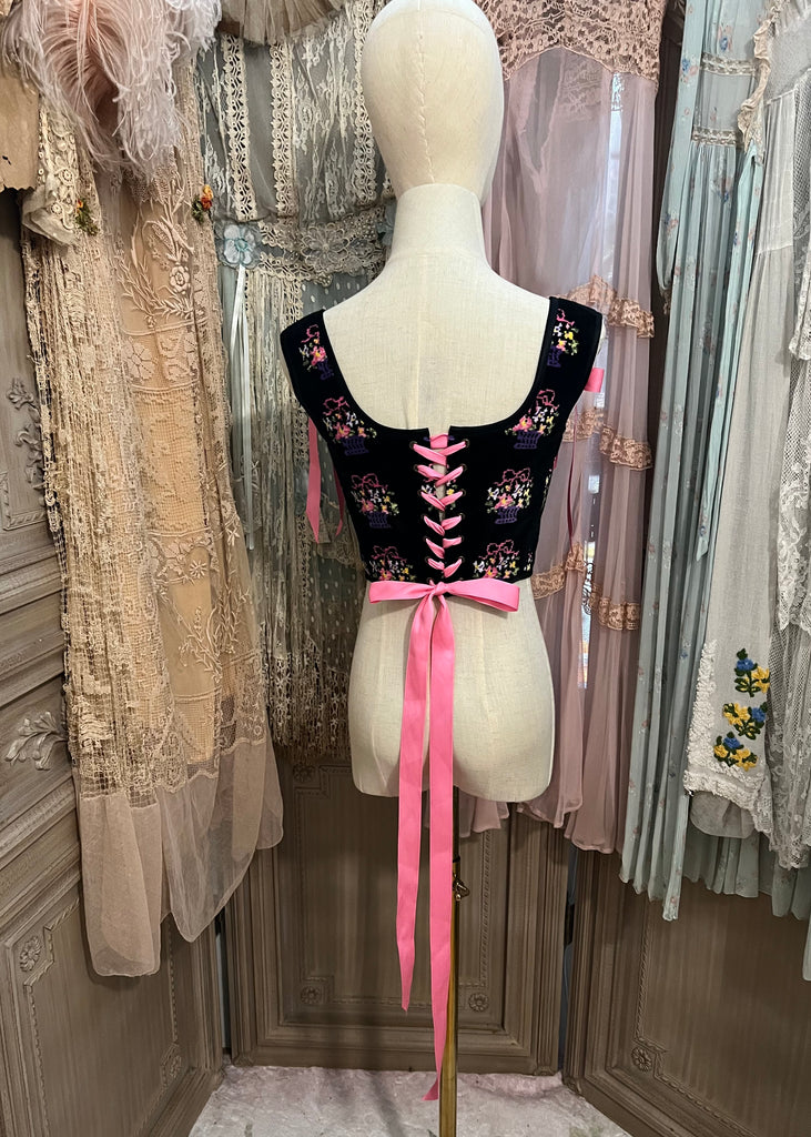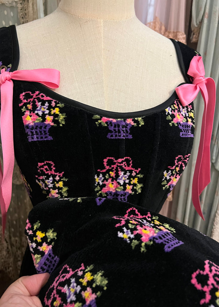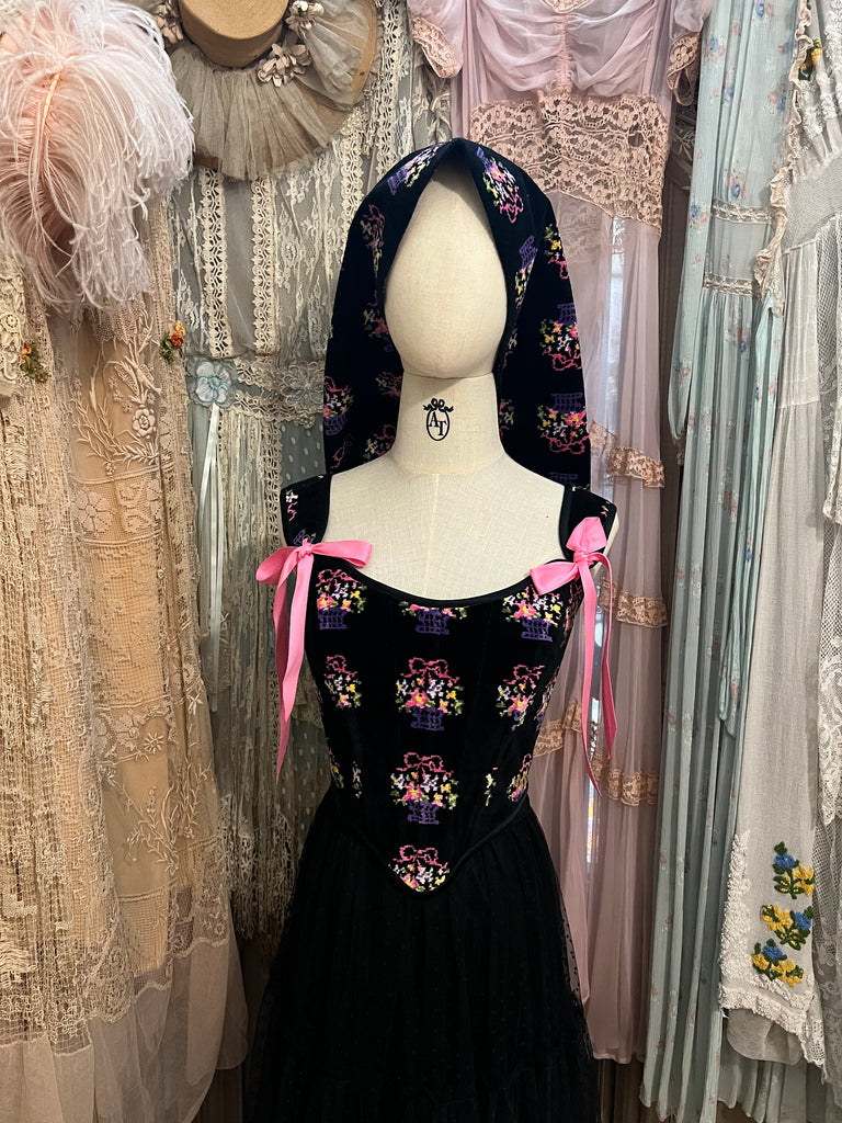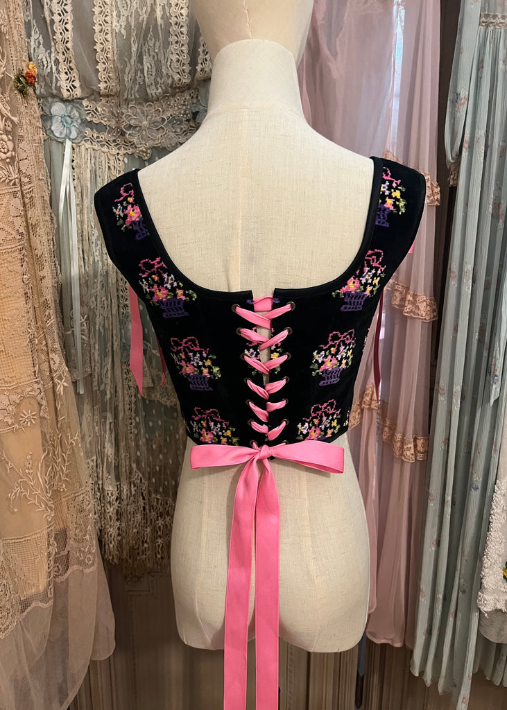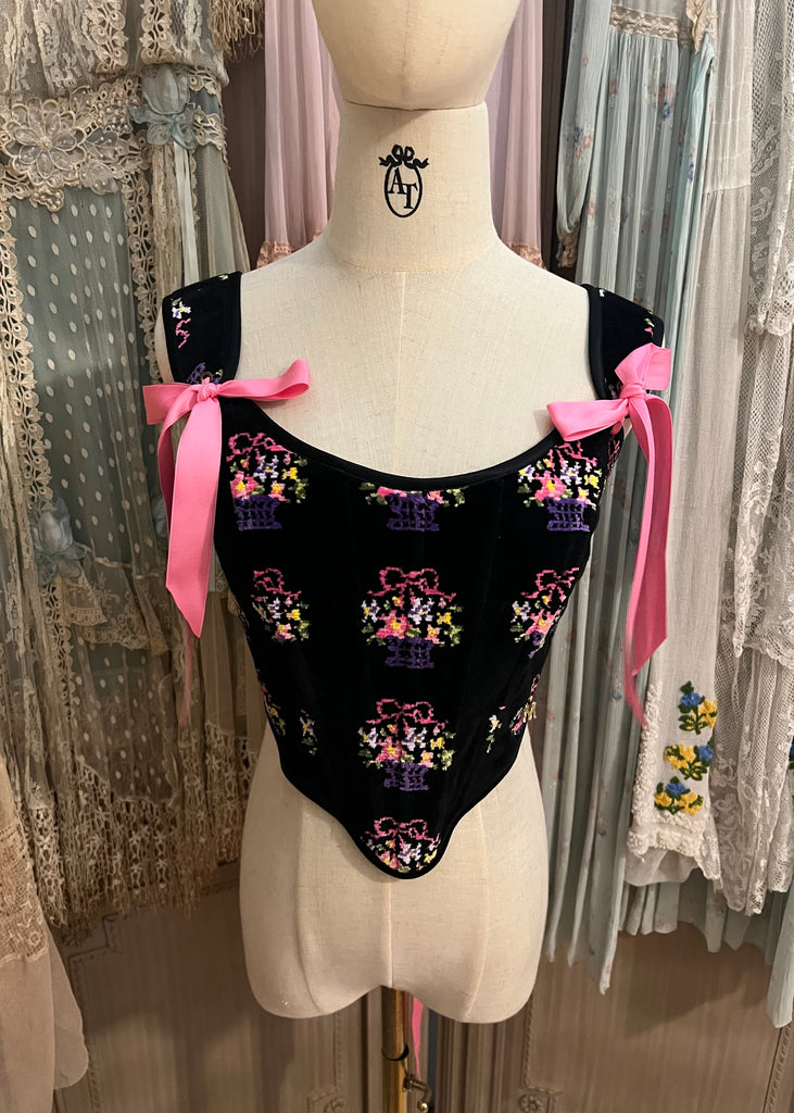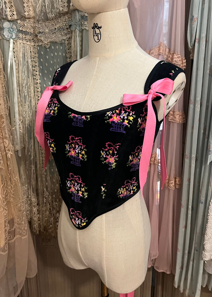 corset : cotton velvet’ nylon ribbons, threads (shell)
