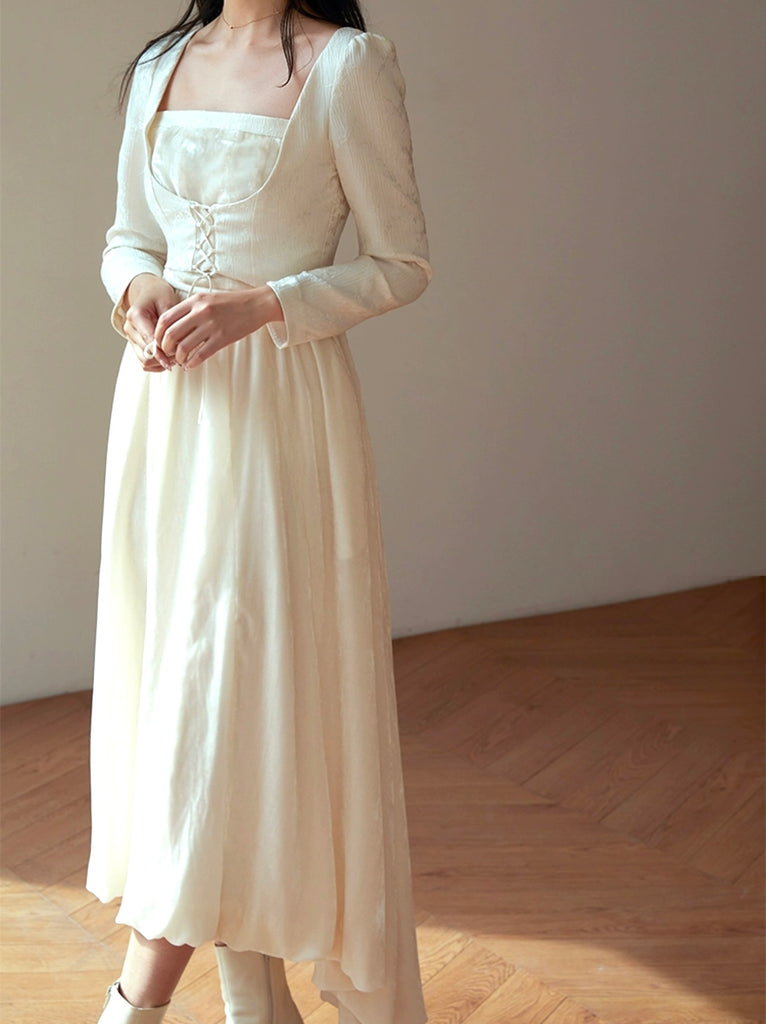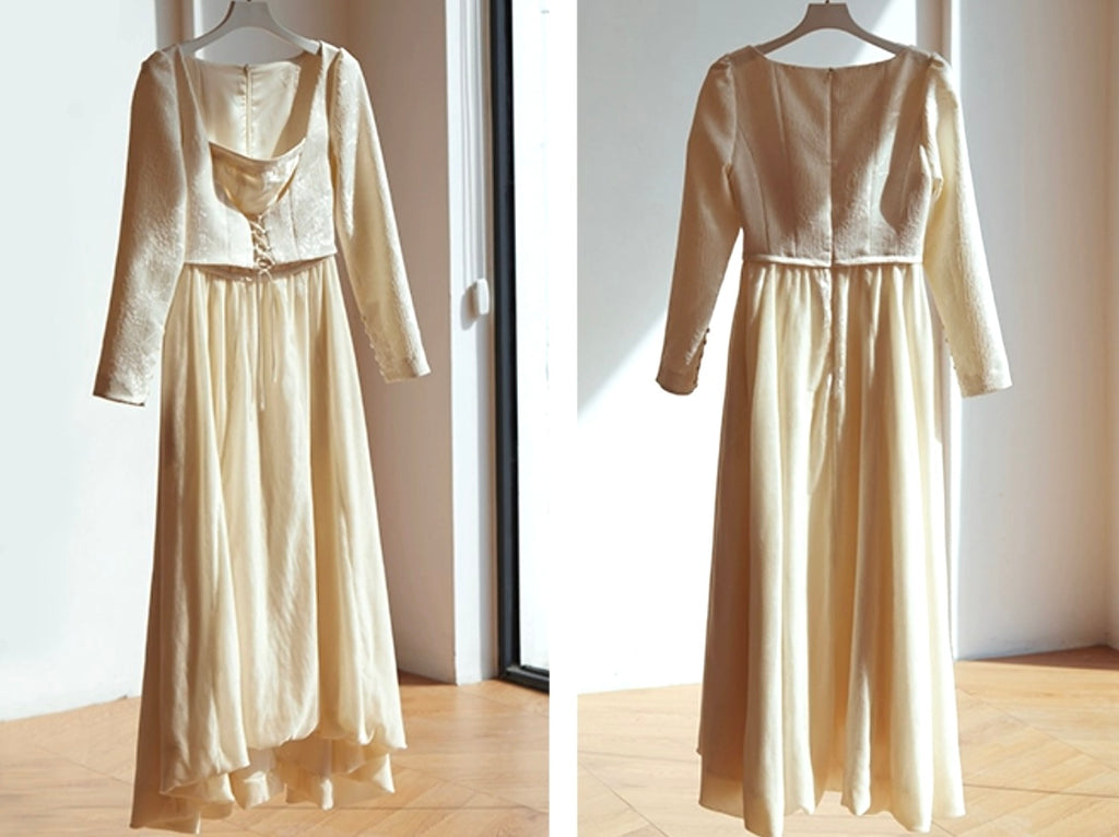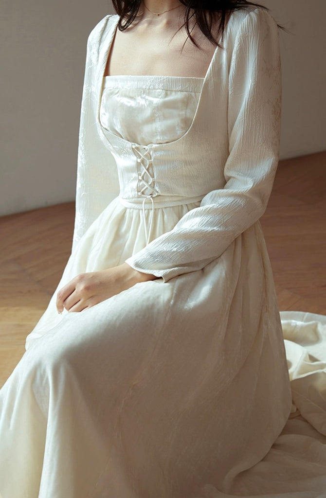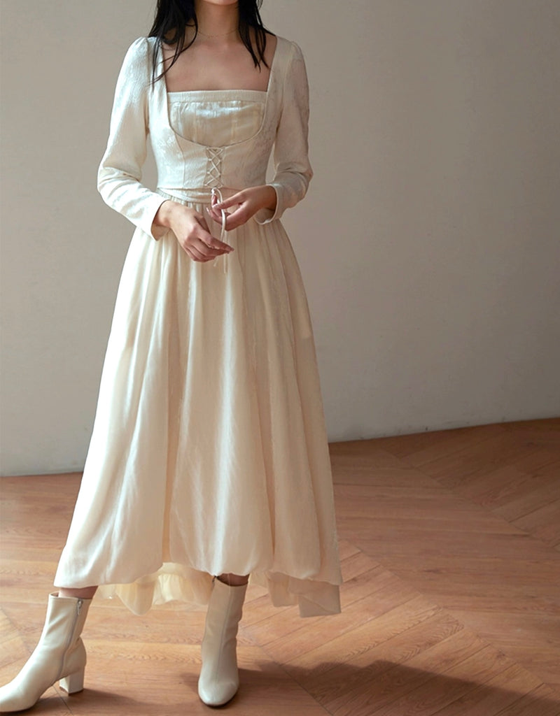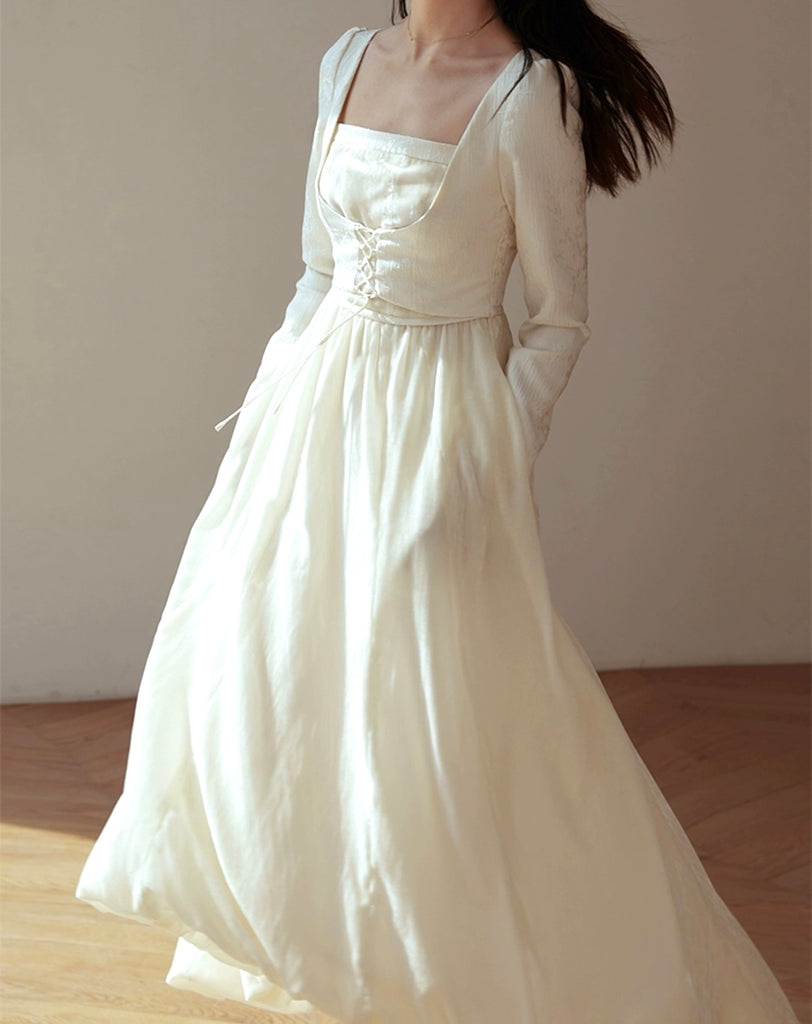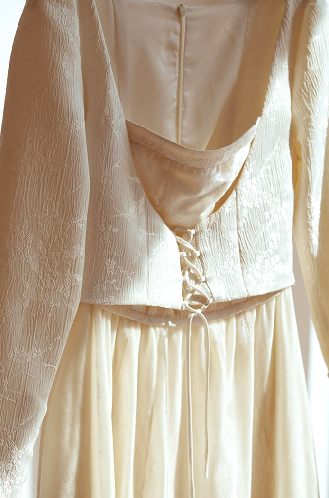fake 2 pieces with a corseted bodice made of jacquard fabric