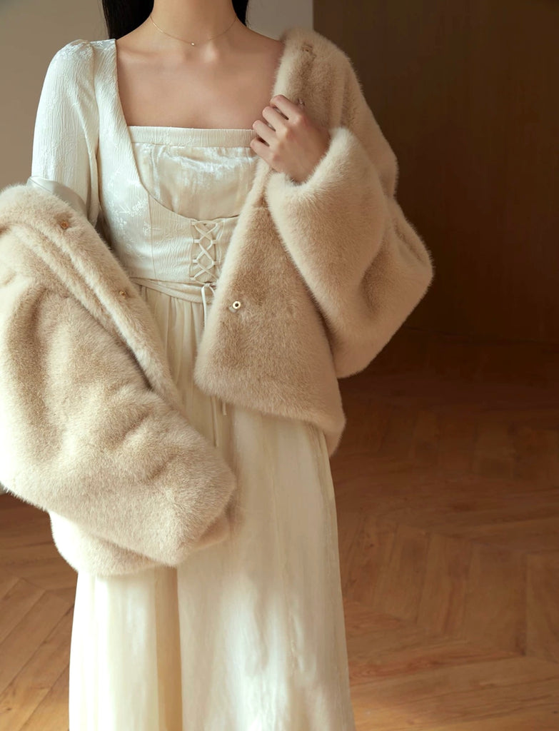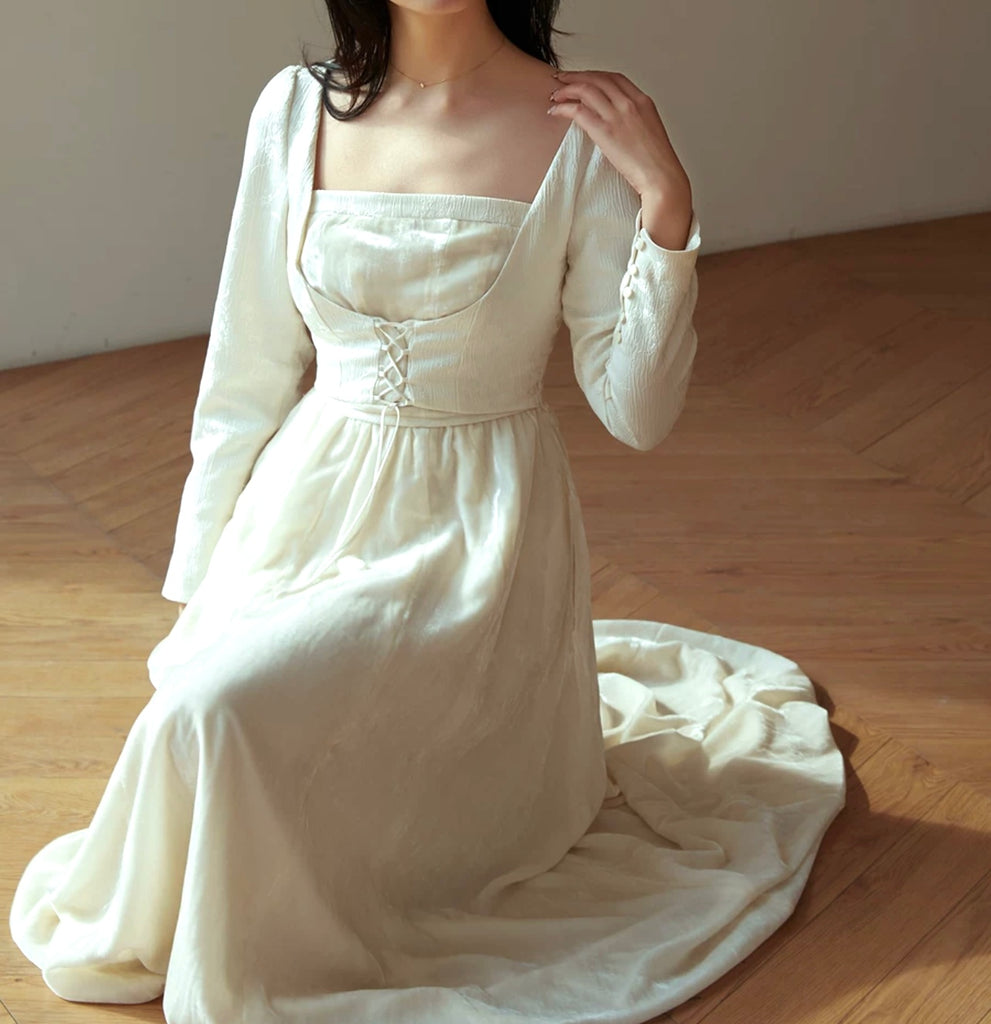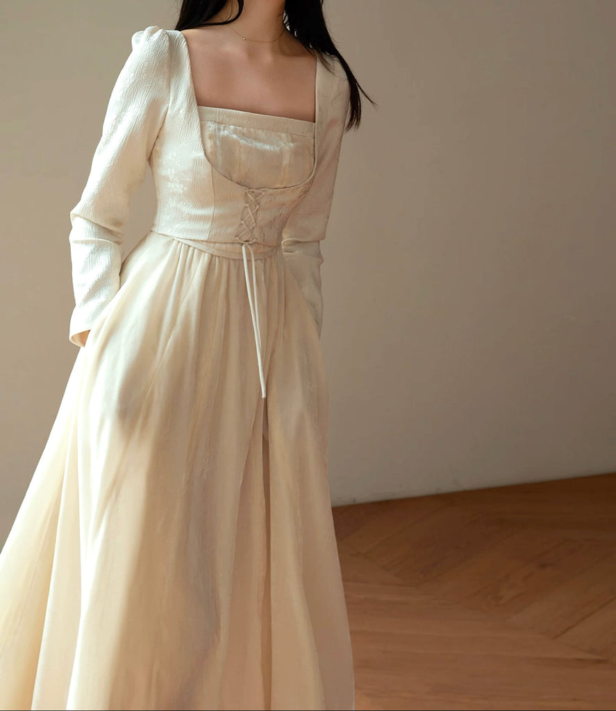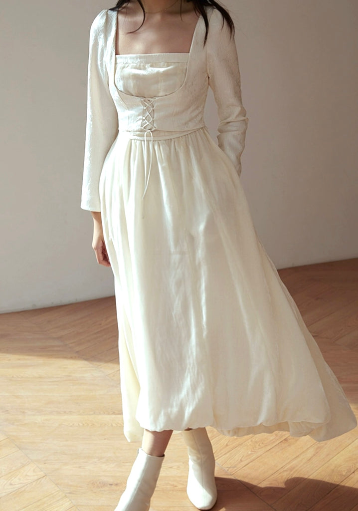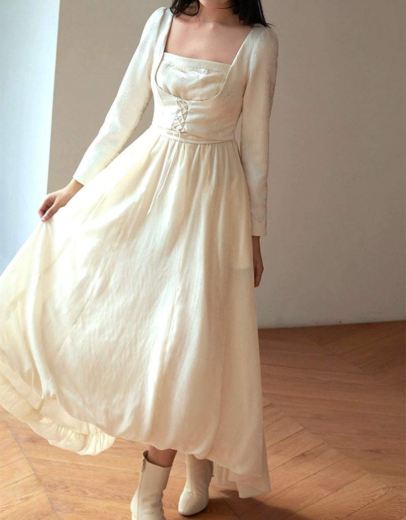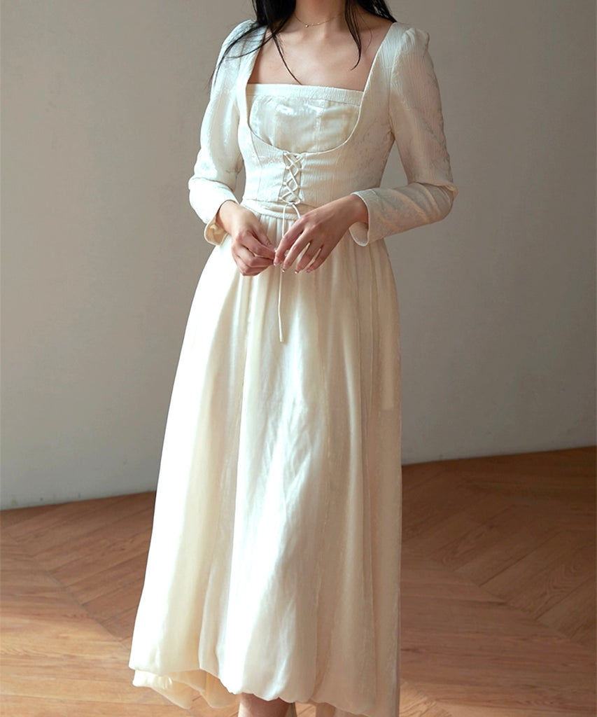 fake 2 pieces with a corseted bodice made of jacquard fabric