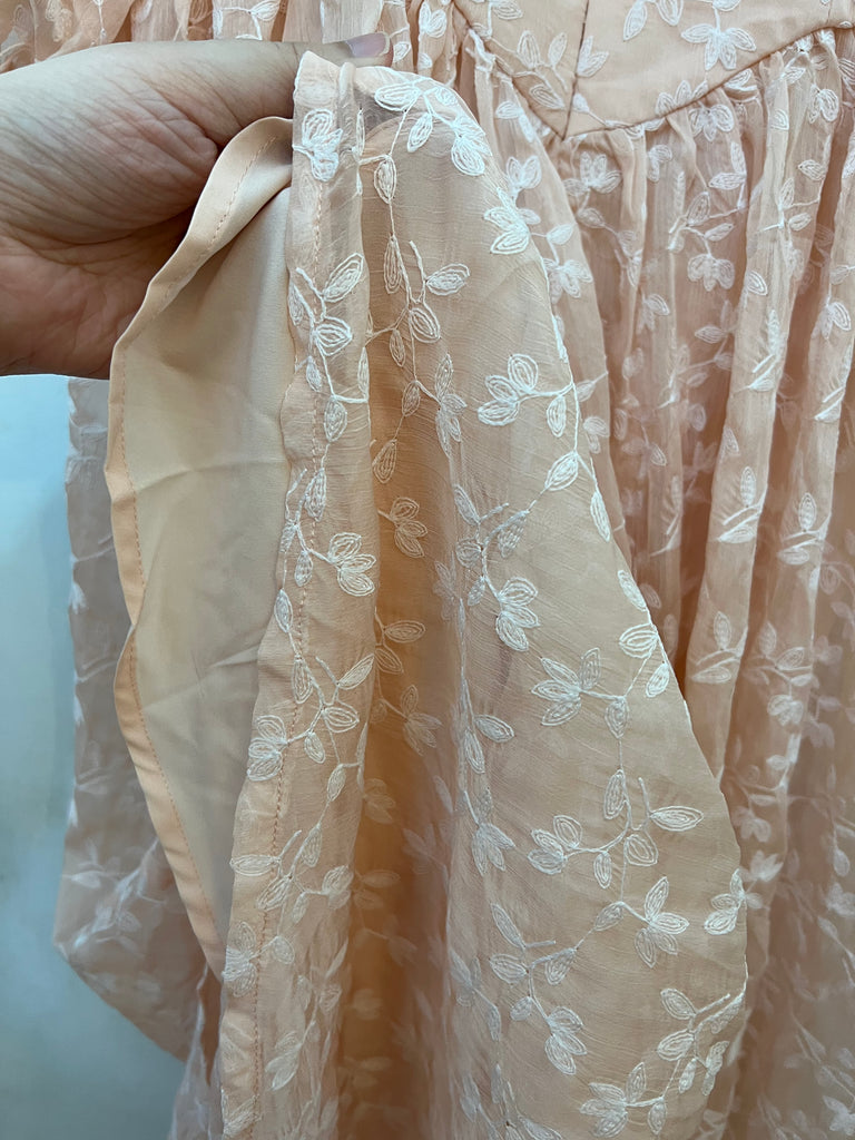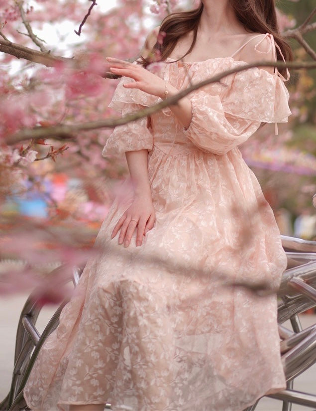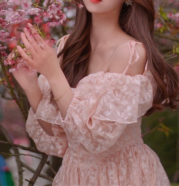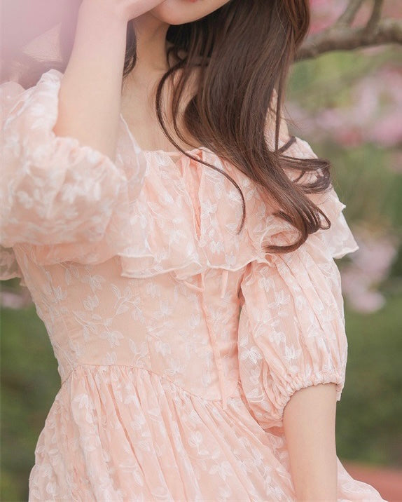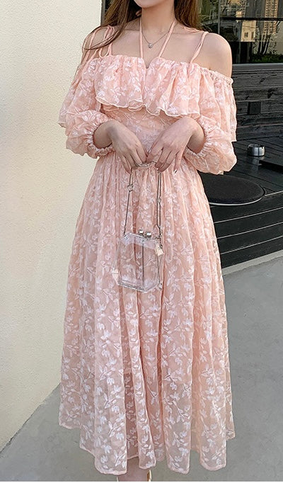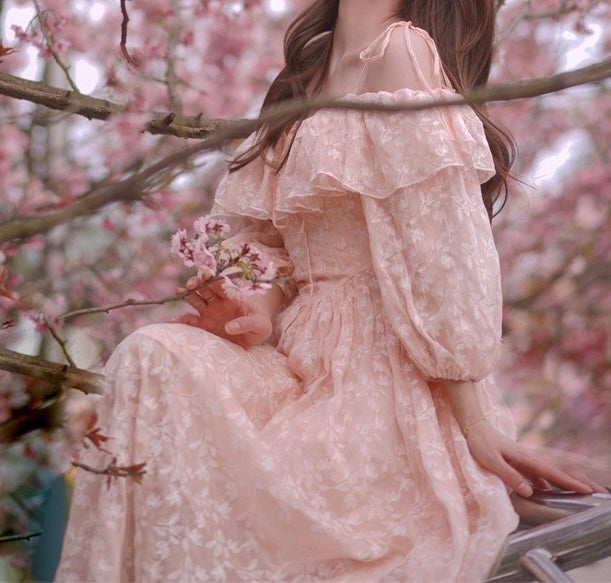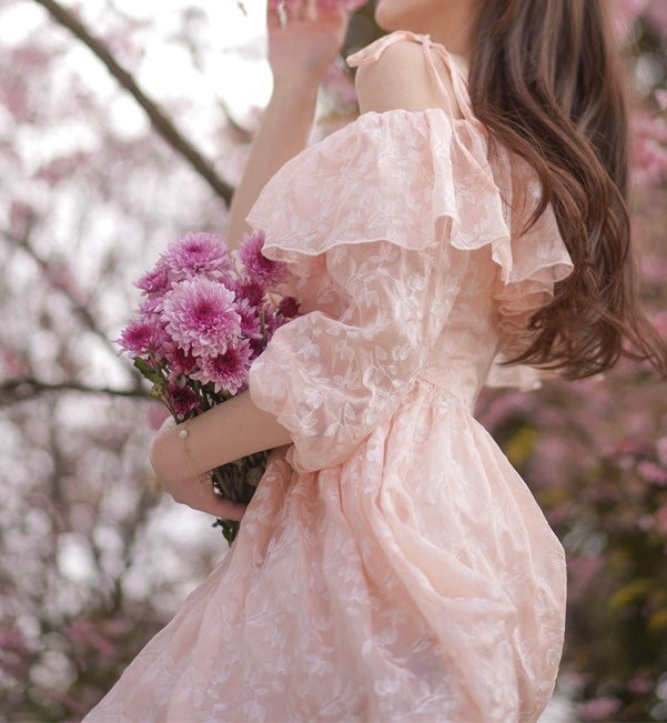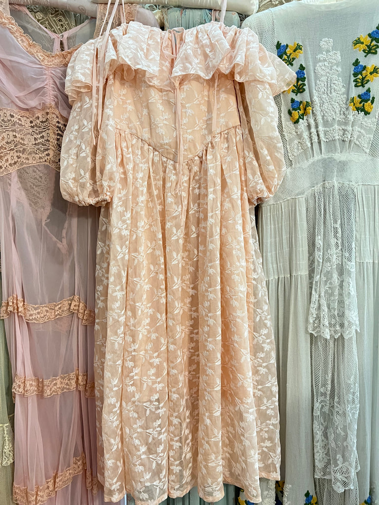 ultra romantic designs with frills / off shoulder and floral embroidery on entire dress