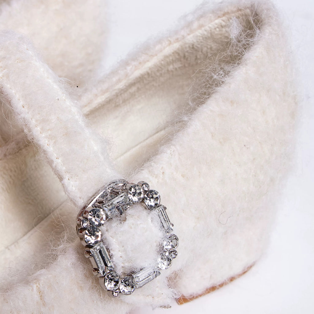 Composition: fabric including mohair and wool (shell) / sheepskin lining (insole), rubber sole